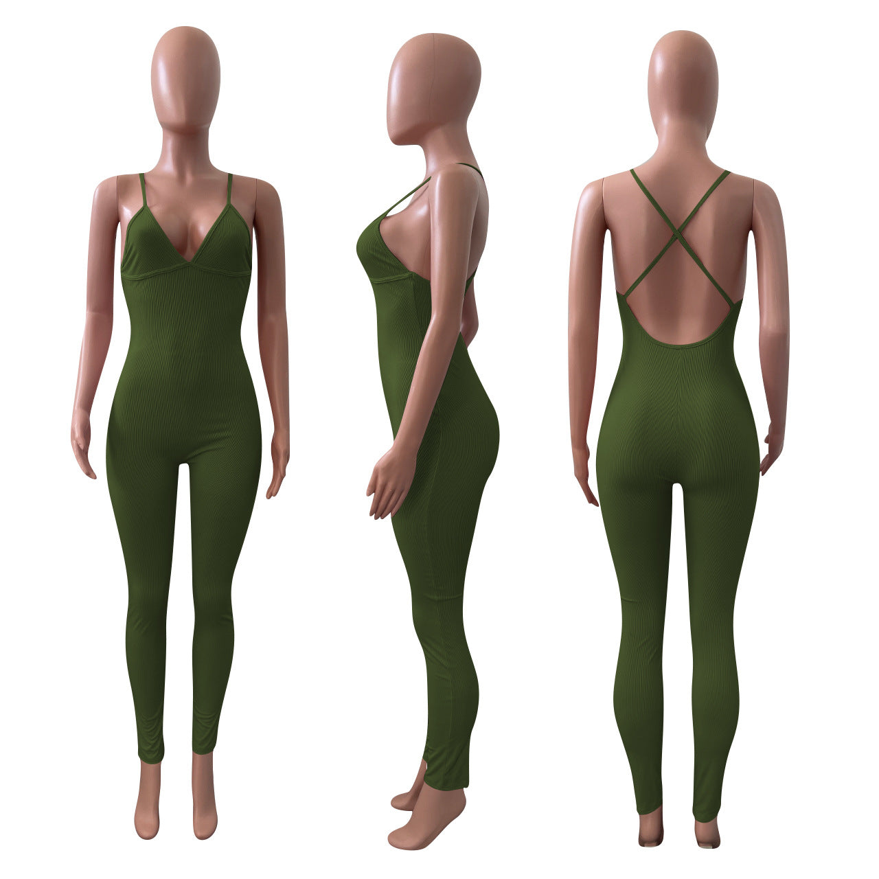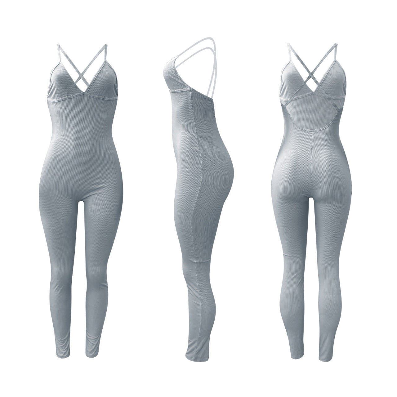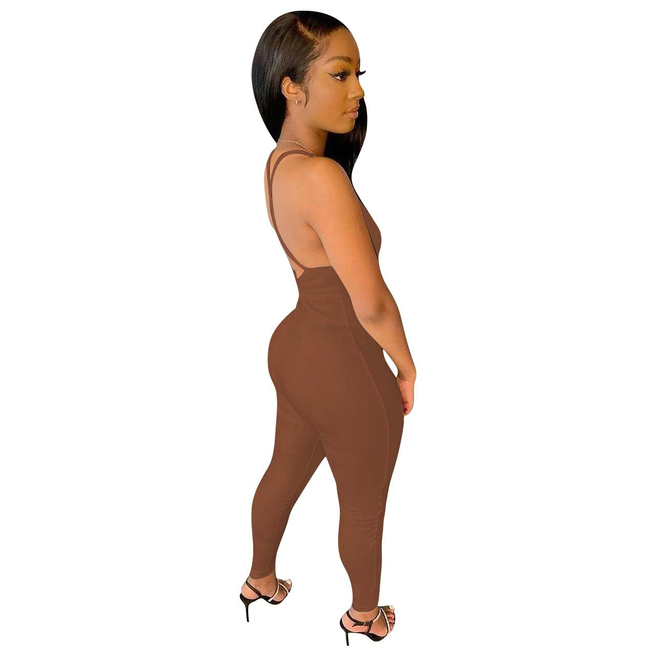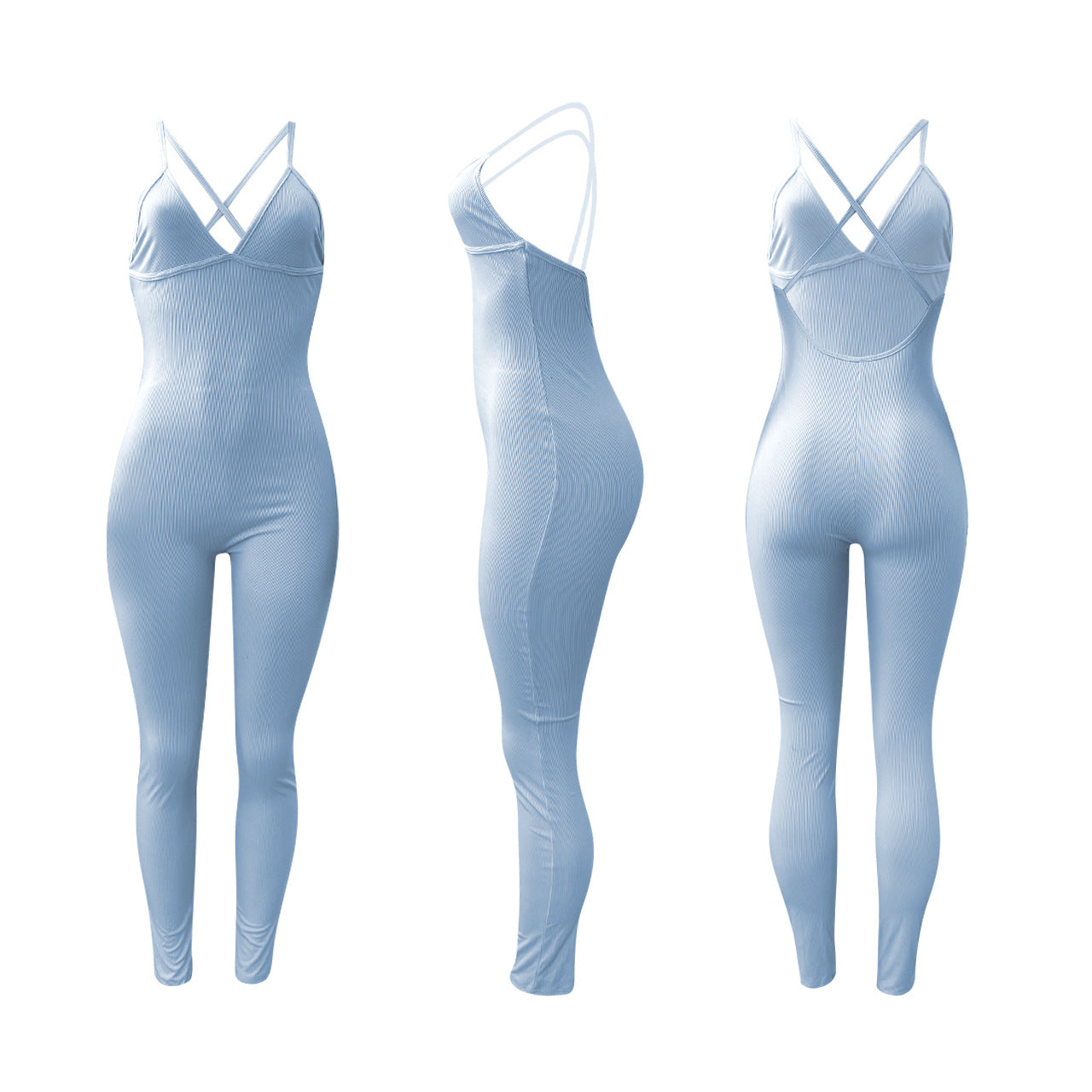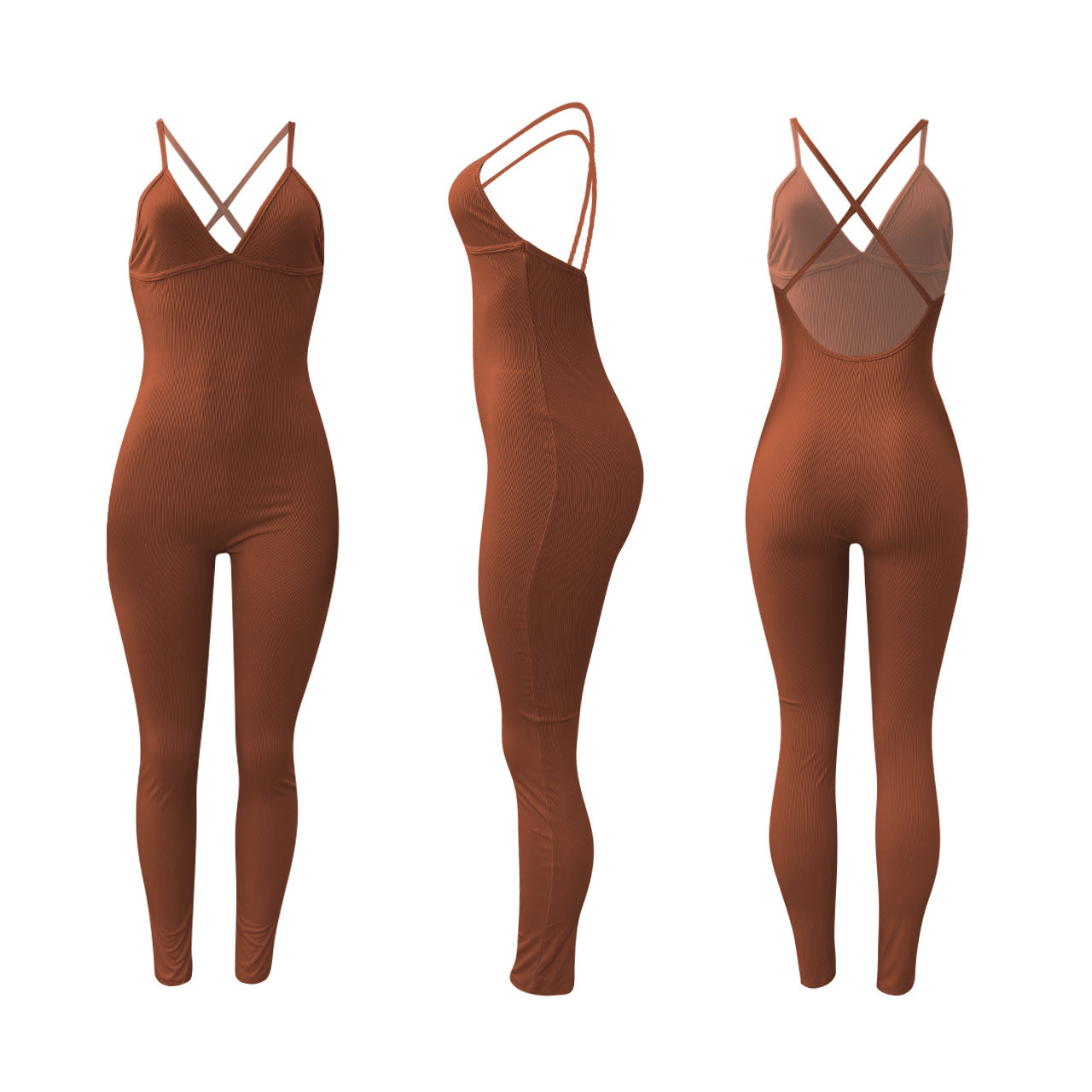 Ribbed Suspenders Backless Slim Fit Jumpsuit(CL11829)