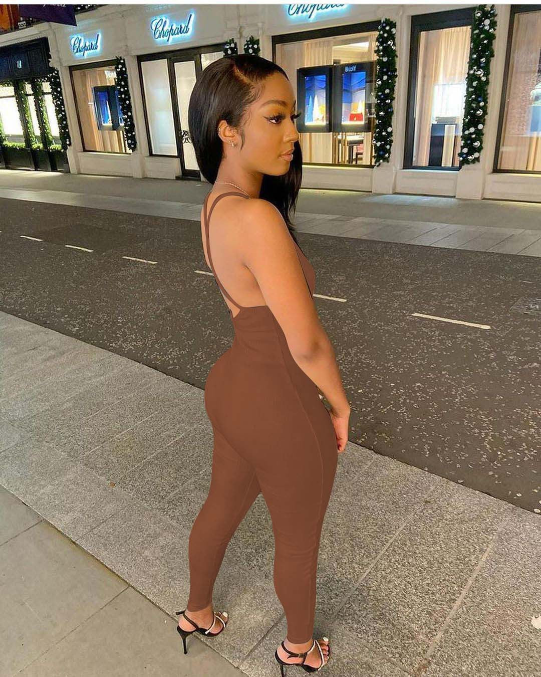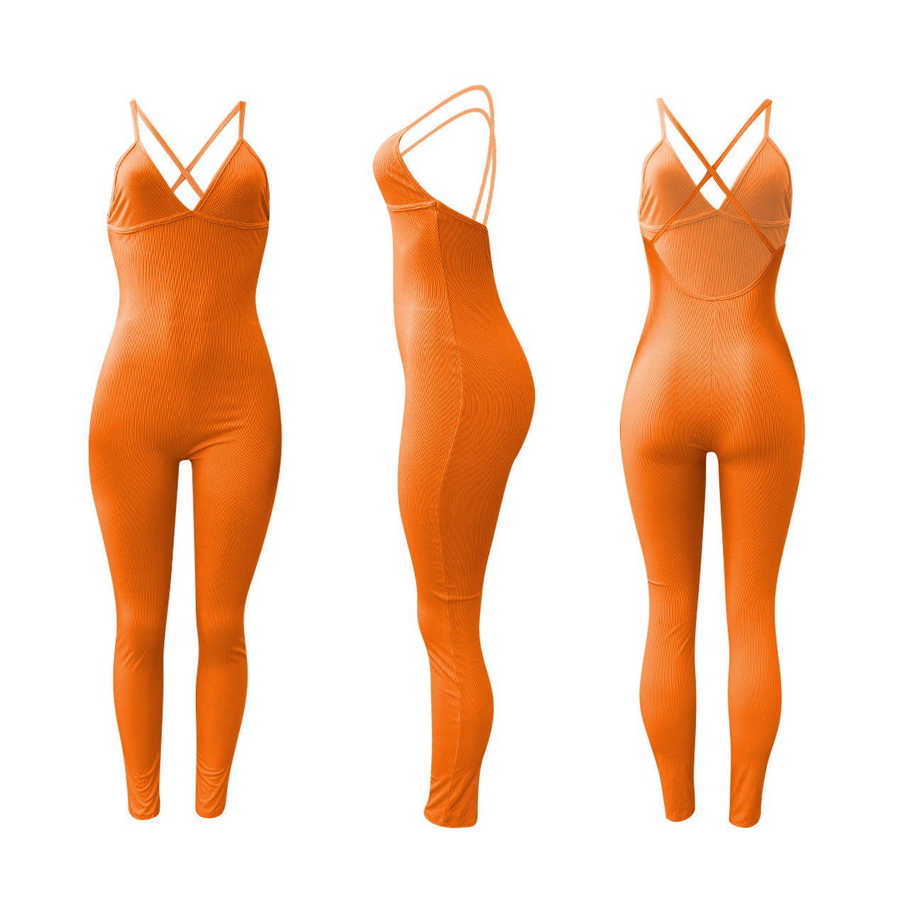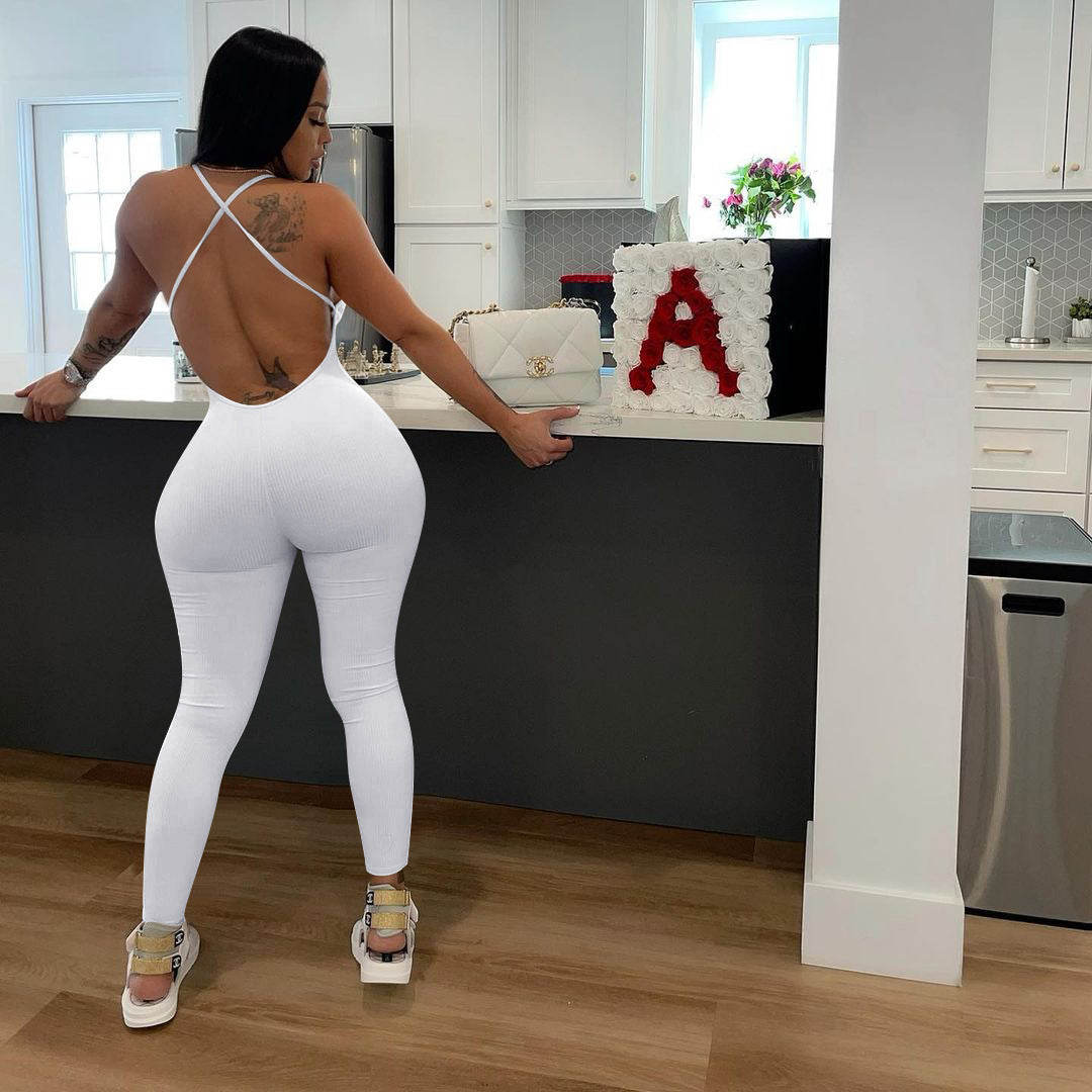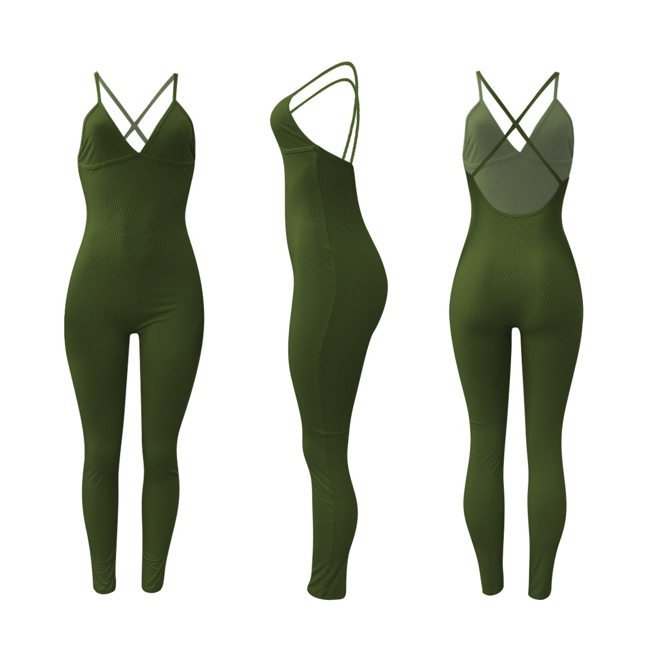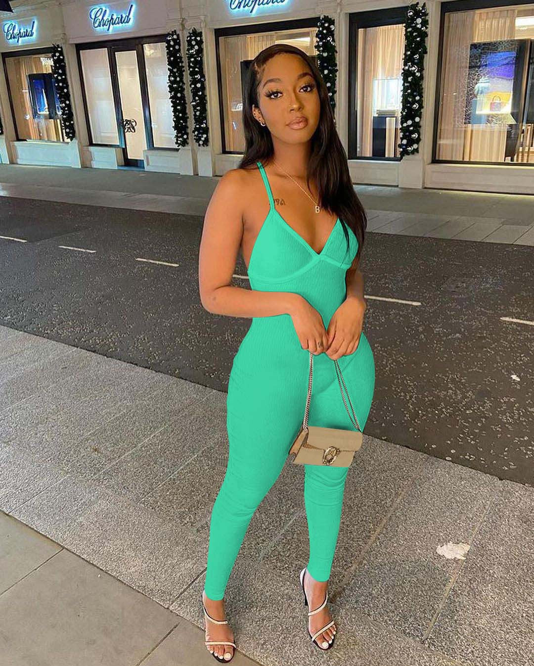 Ribbed Suspenders Backless Slim Fit Jumpsuit(CL11829)