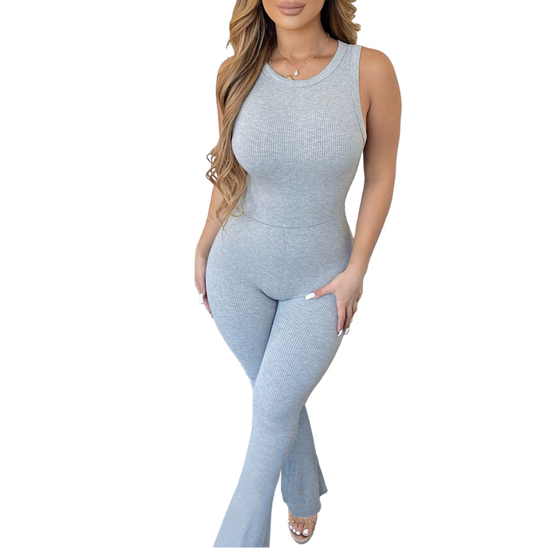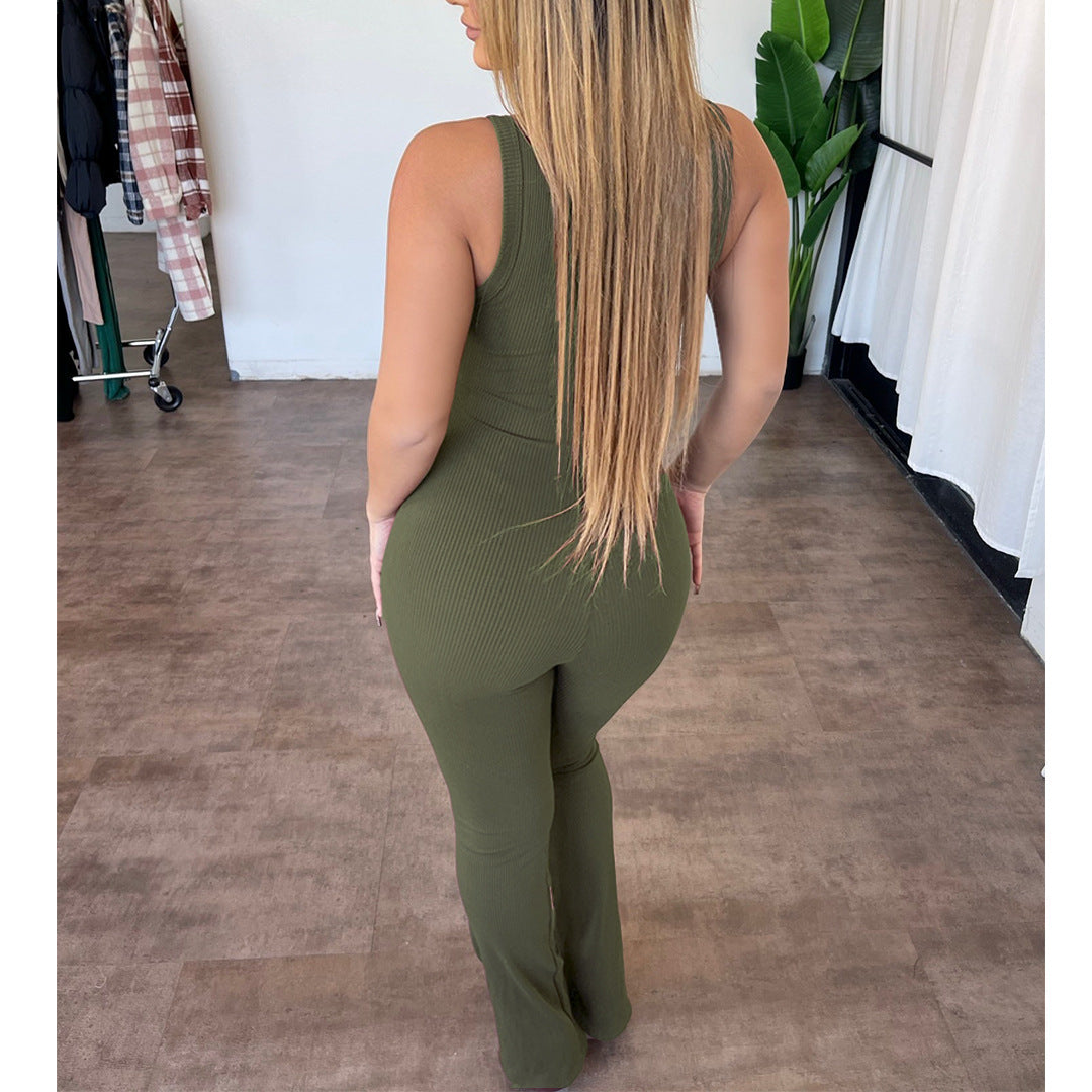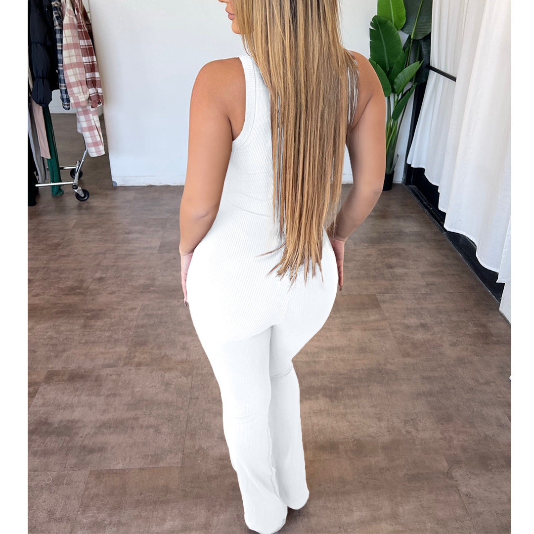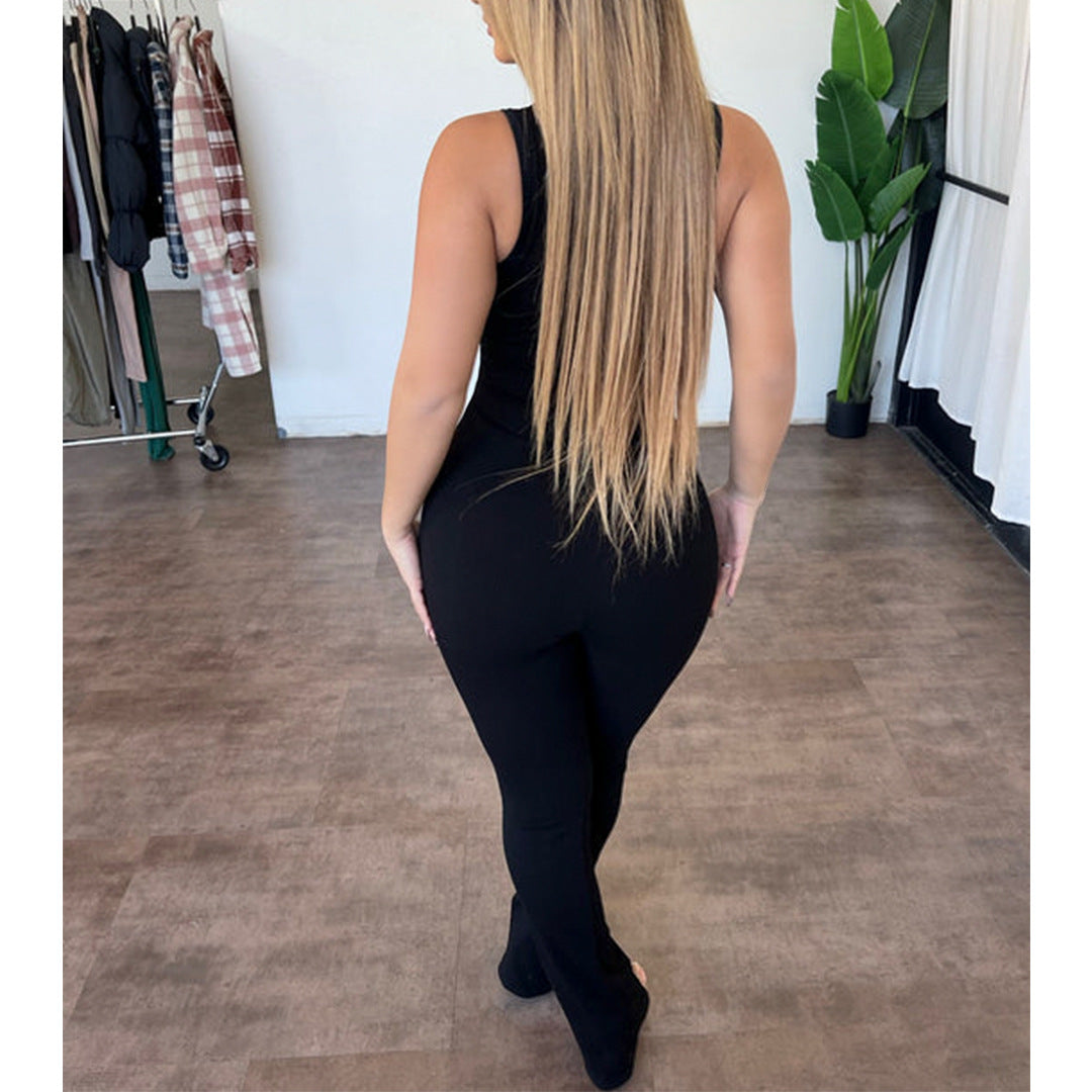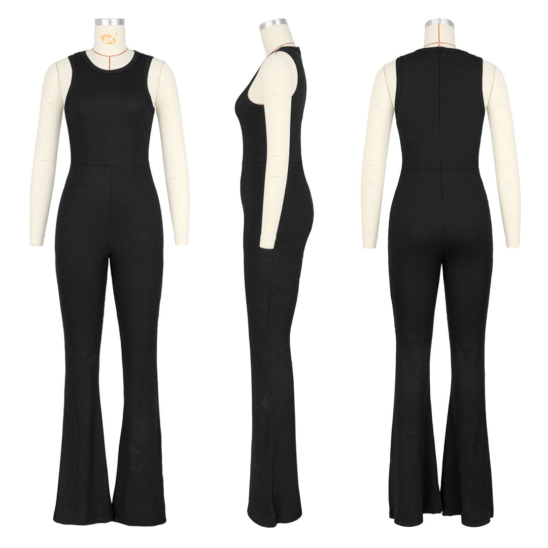 Sleeveless Zipper Slim High Waist Micro Flare Jumpsuit (CL11230)
