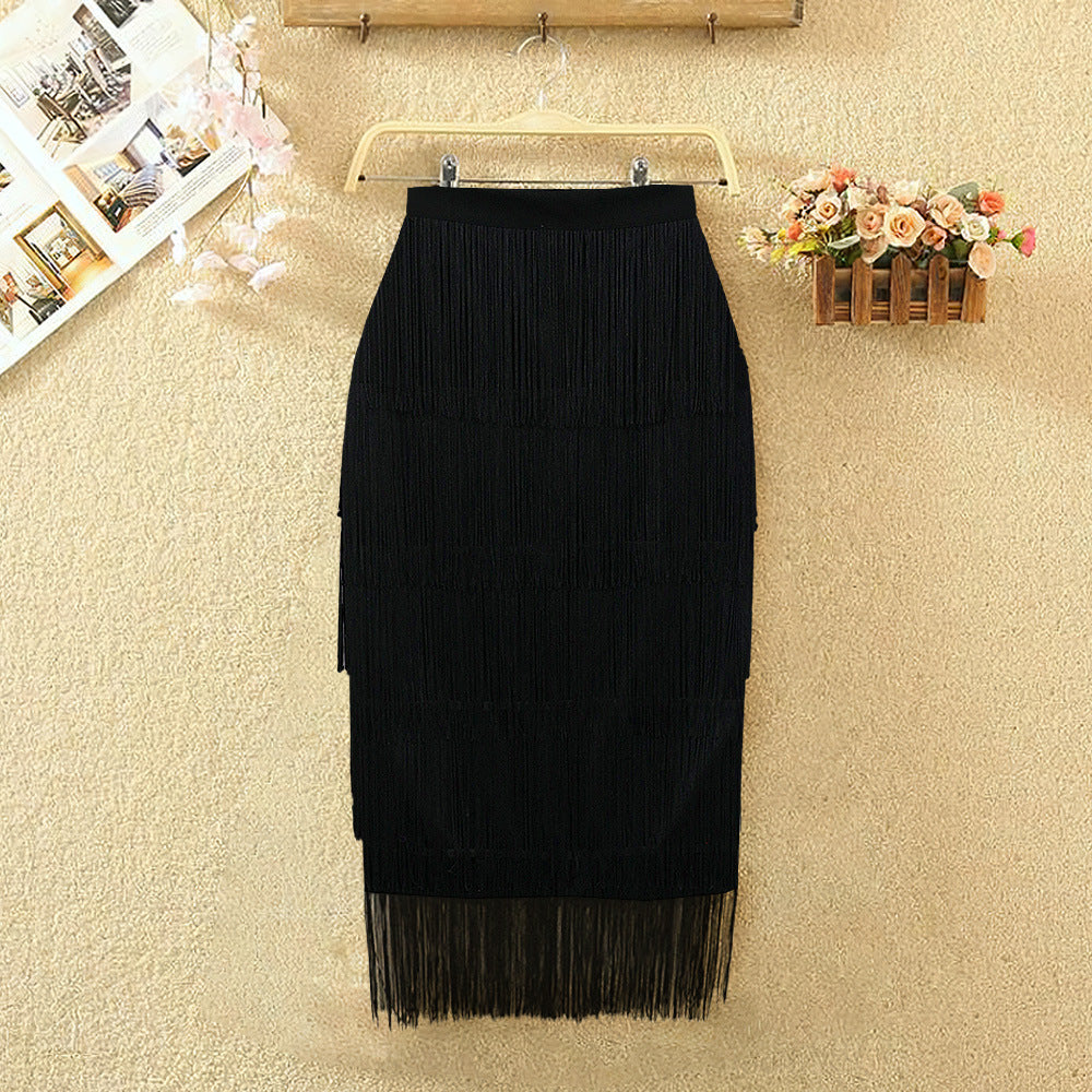 High Waist Stitching Tassels Slim-Fit Hip Skirt plus Size (CL10090)