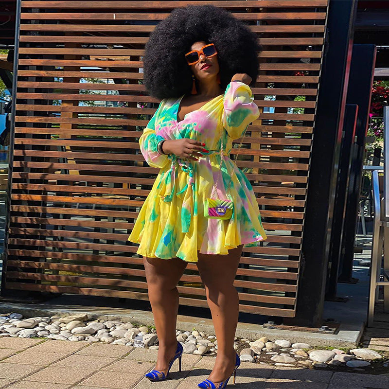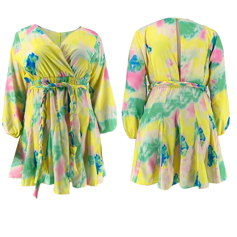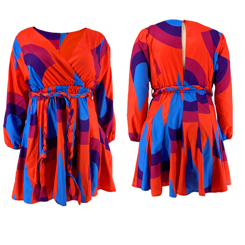 Printed V-neck Sexy Woven Large Swing Dress (CL10469)
