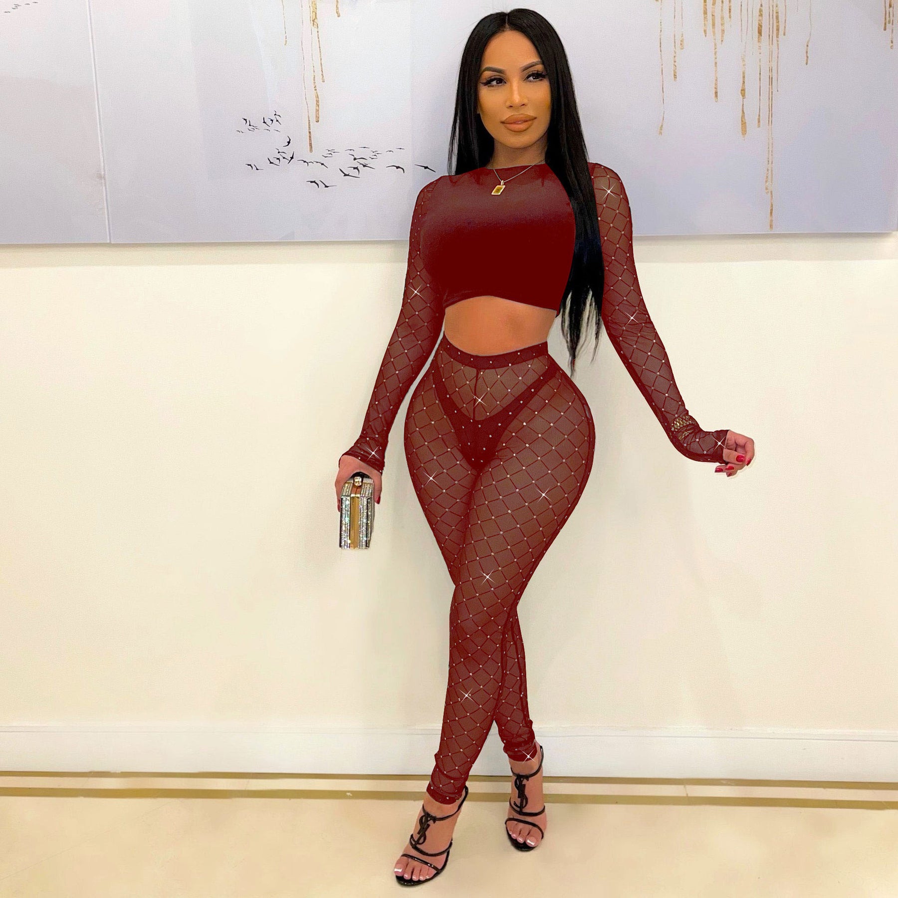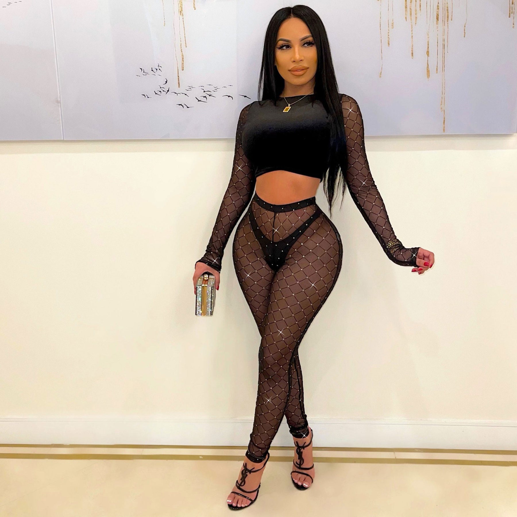 See-through Sexy Mesh Flocking Hot Silver Tight 2pc(CL10057)