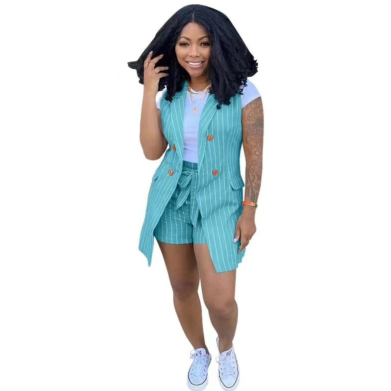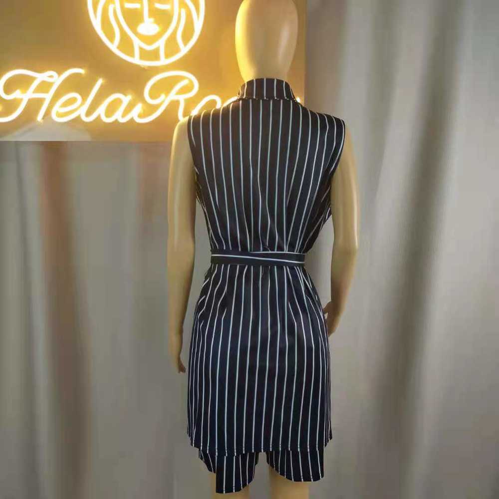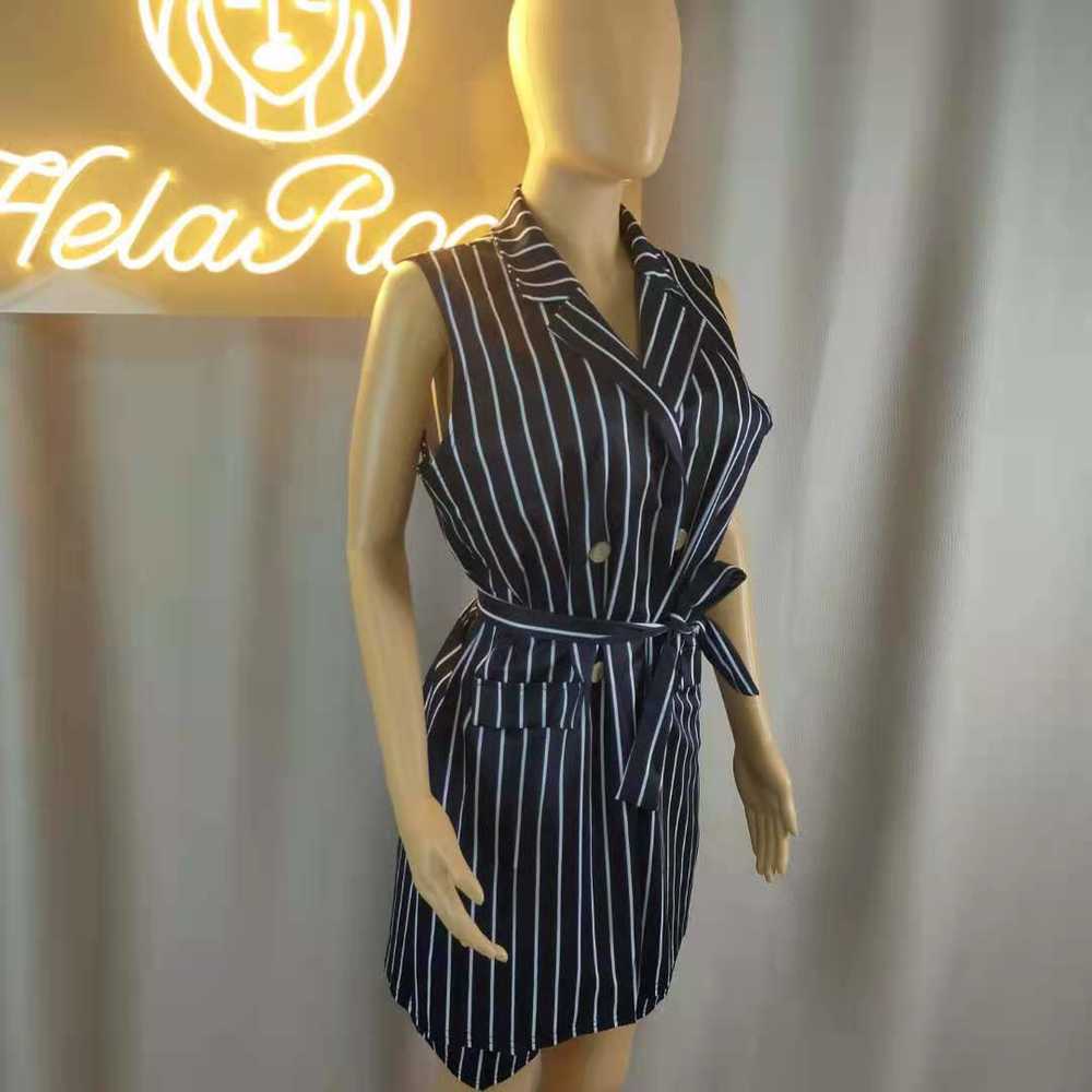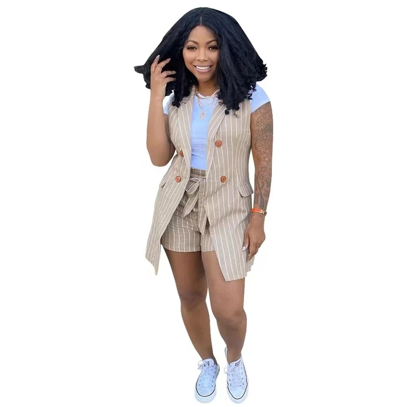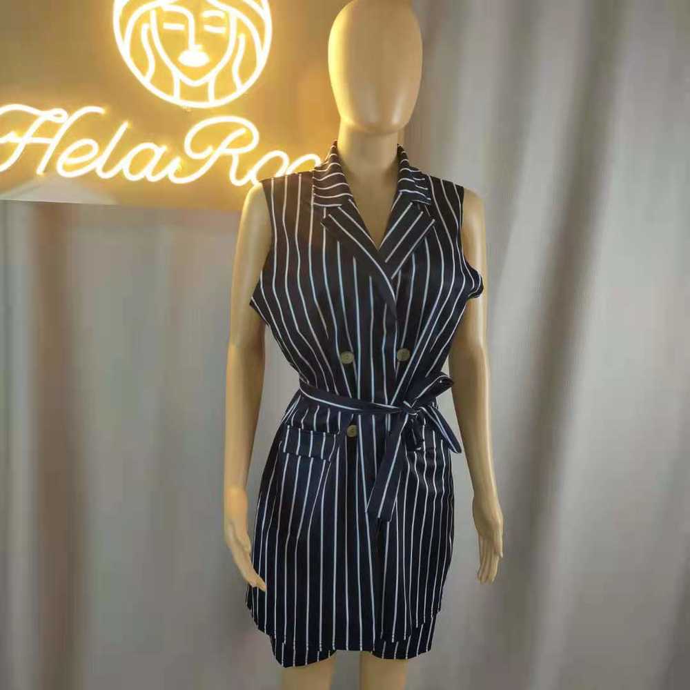 Wholesale office two-piece striped print Blazer waistcoat with belt 2PC(CL8926)