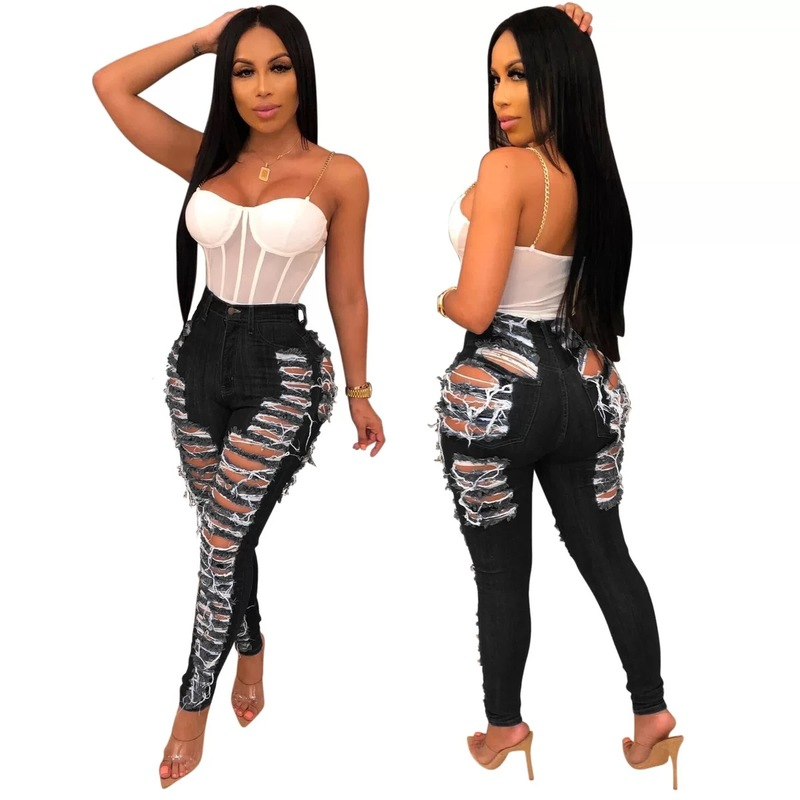 Wholesale sexy personalized hole washing slim fit elastic denim Leggings(CL9316)