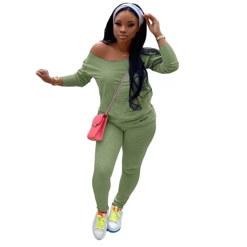Wholesale solid long sleeve casual suit without headscarf 2PC(CL9134)