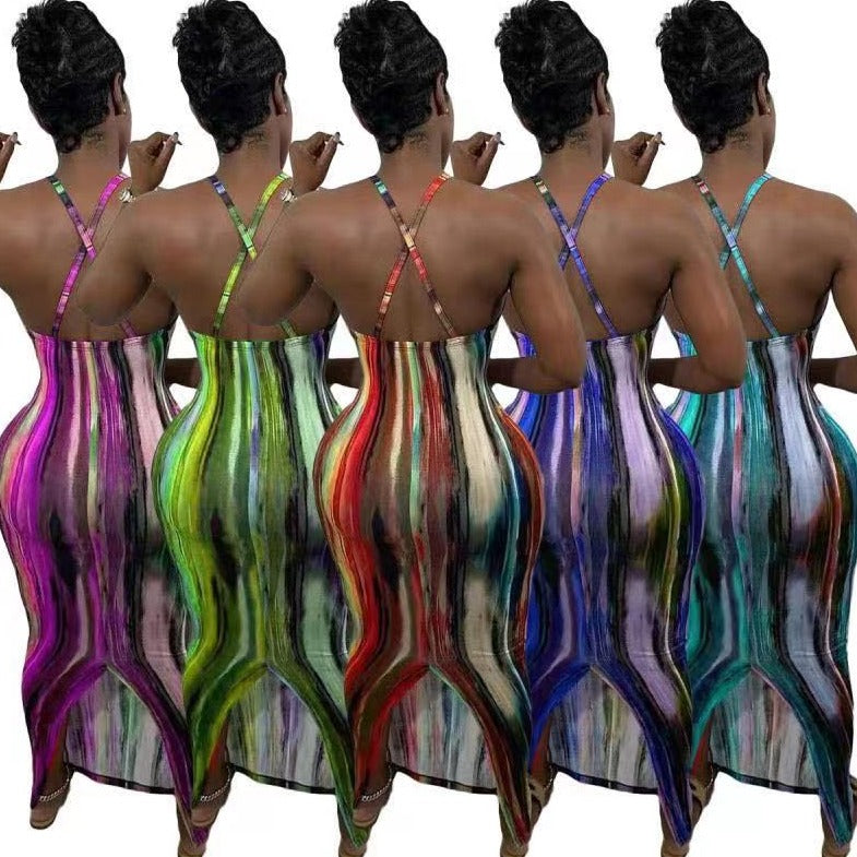 lekima.myshopify.com Wholesale tie dye Printed Dress(CL8801)