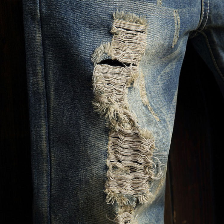 Ripped Cotton Non-Elastic Denim jeans(ML8239)