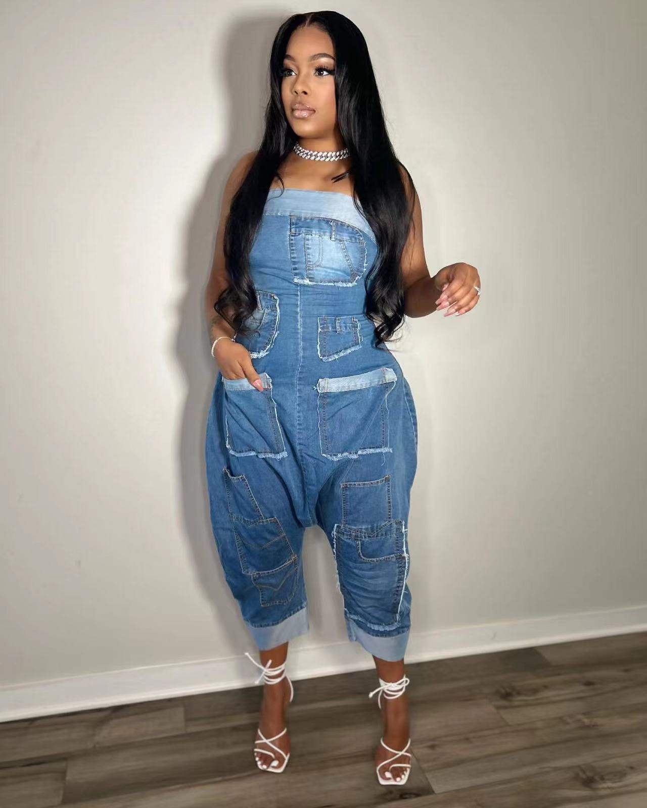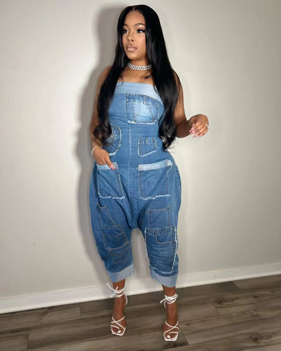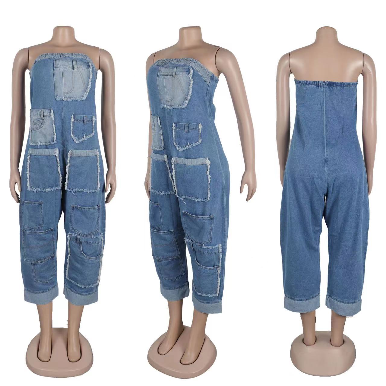 Jeans sleeveless jumpsuit(CL12230)
