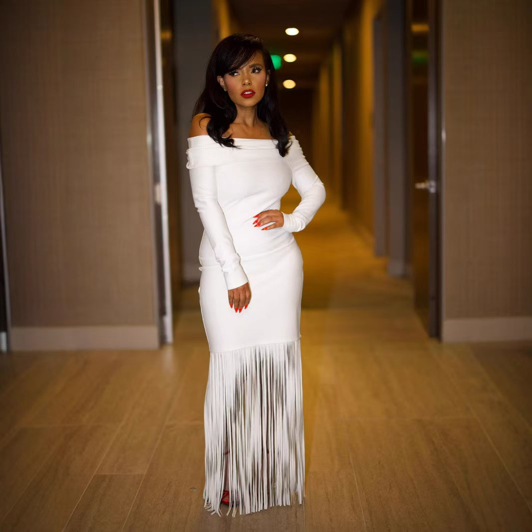 One-shoulder tassel hip long-sleeved dress(CL12305)