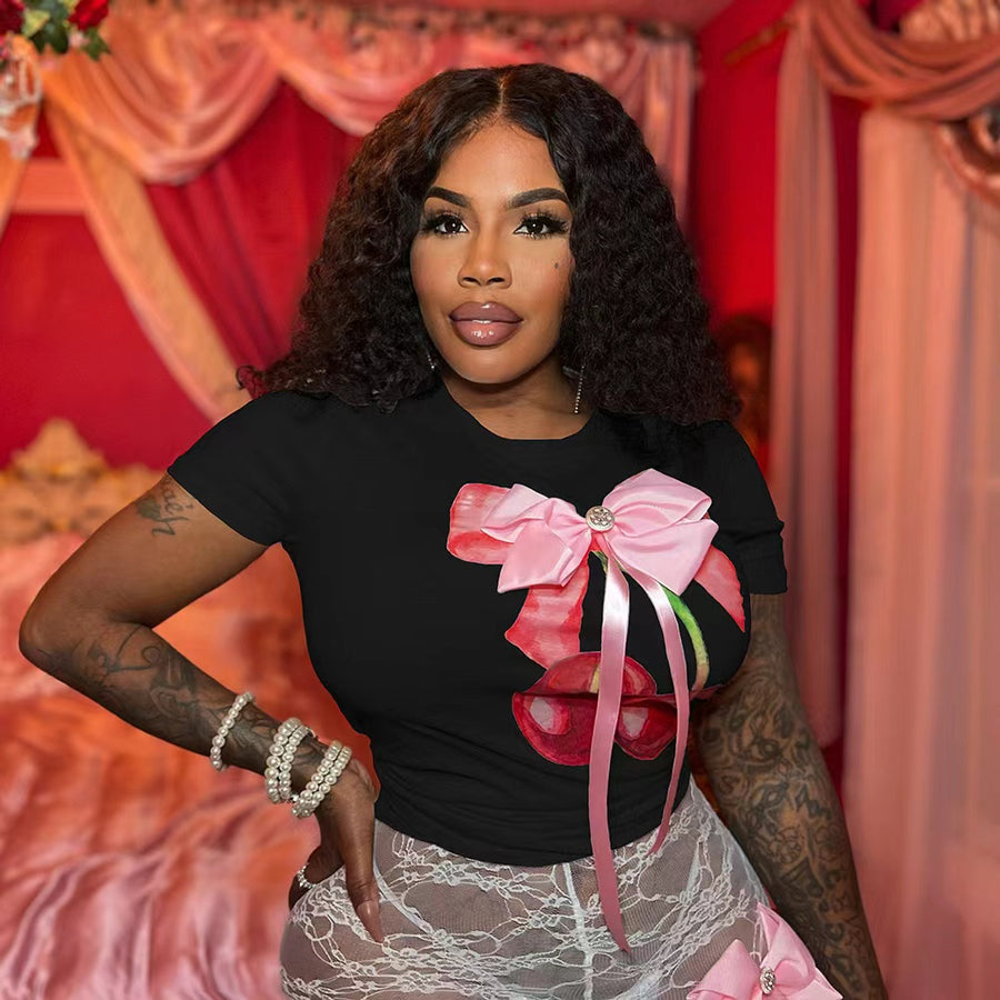 Printed bow T shirt(CL12255)