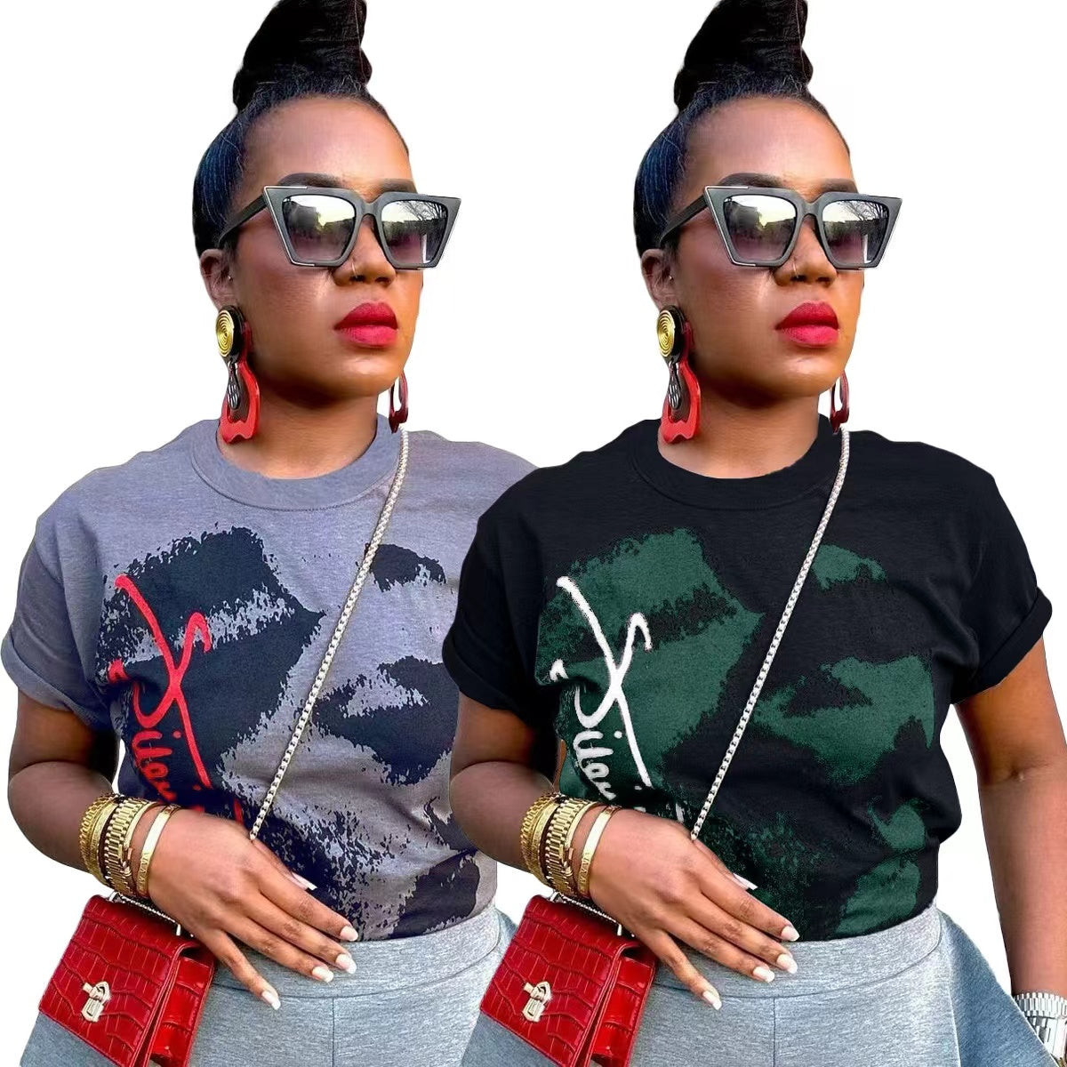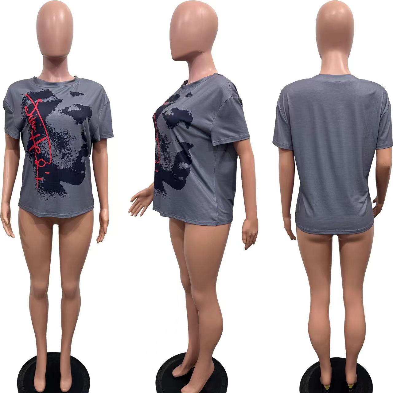 Printed loose round neck short Sleeve T shirt(CL12209)