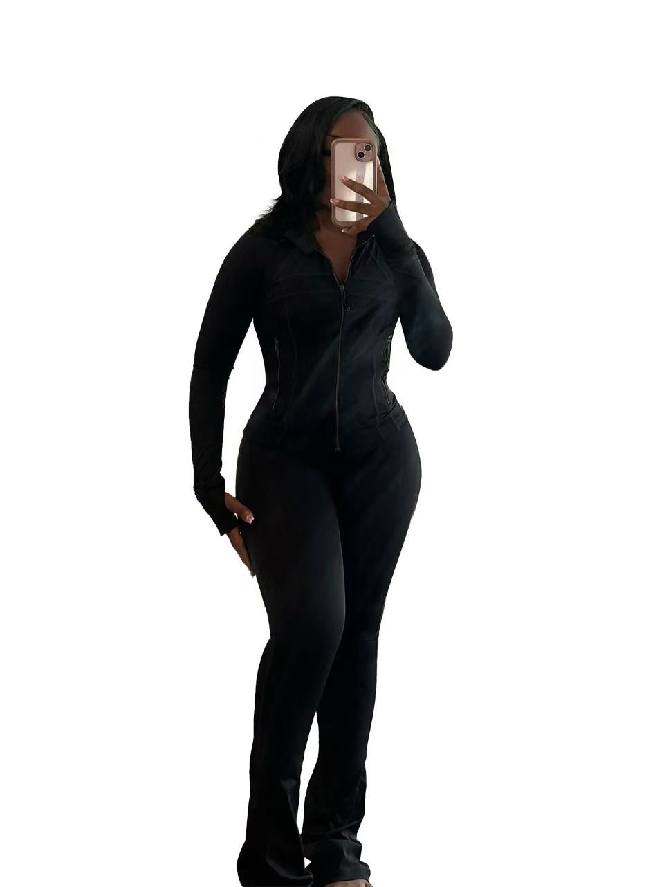 Sexy tight long-sleeved micro-horn two-piece set (CL12353)