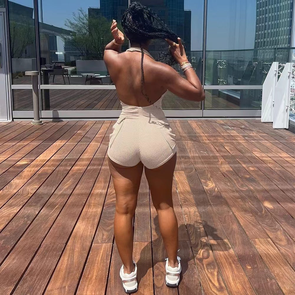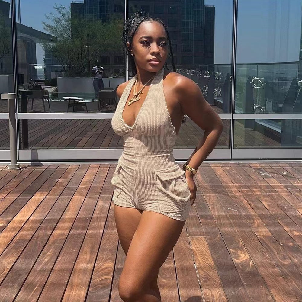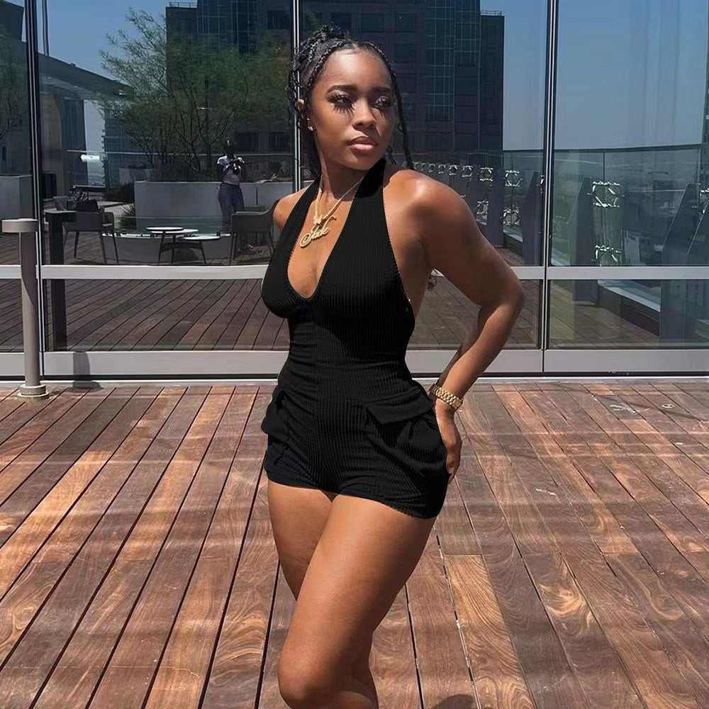Sleeveless backless with neck hanging Jumpsuits(CL12194)