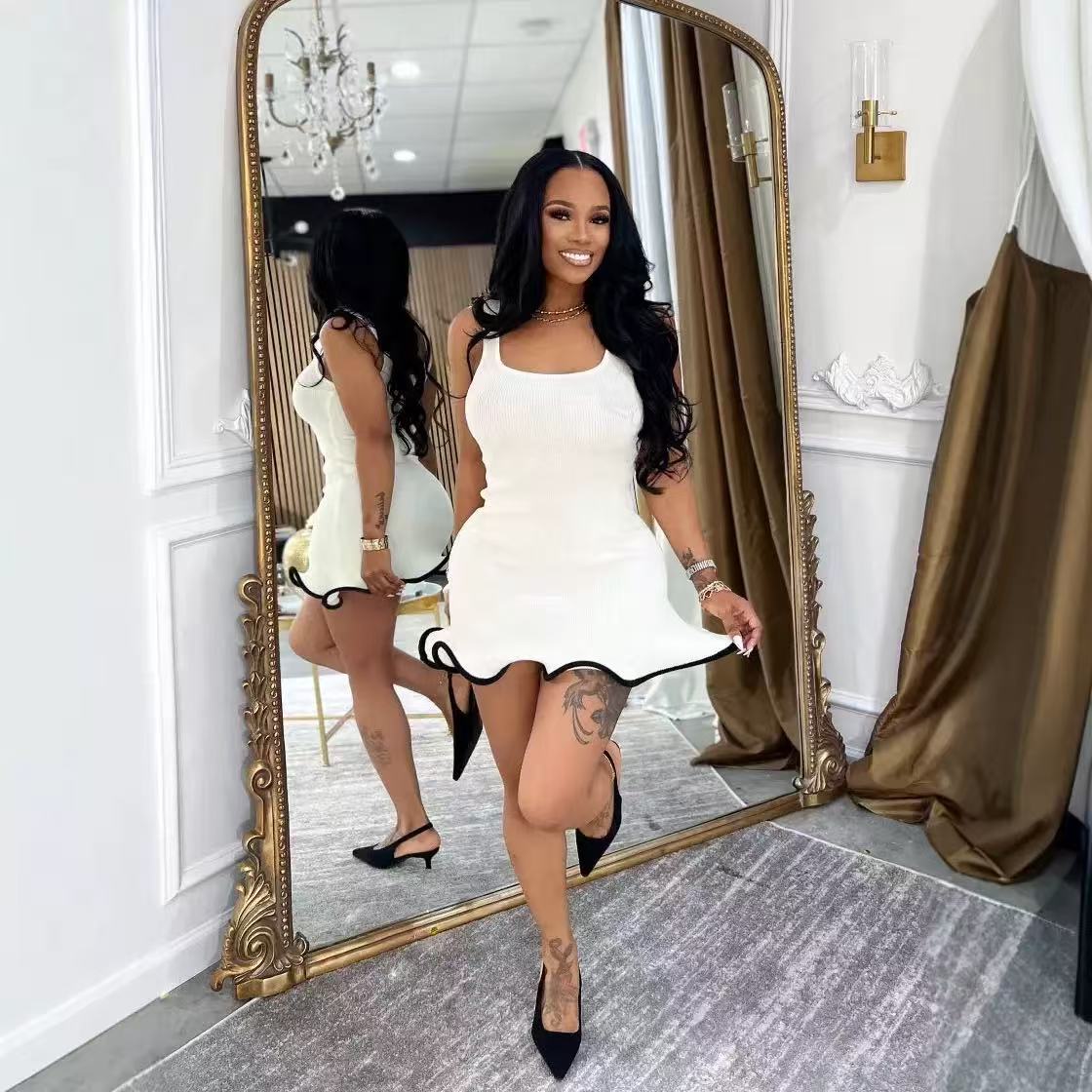 Sleeveless wavy hemmed slim vest dress (CL12338)