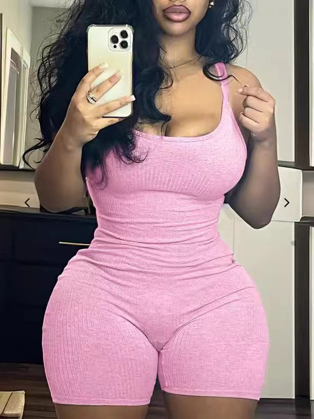 Solid color tight-fitting sports jumpsuit(CL12202)