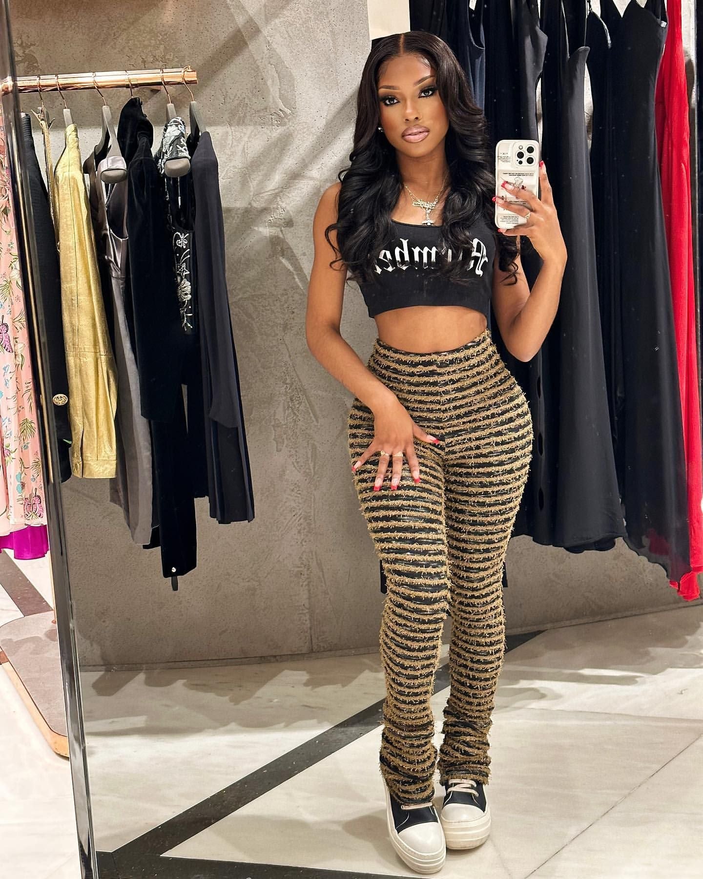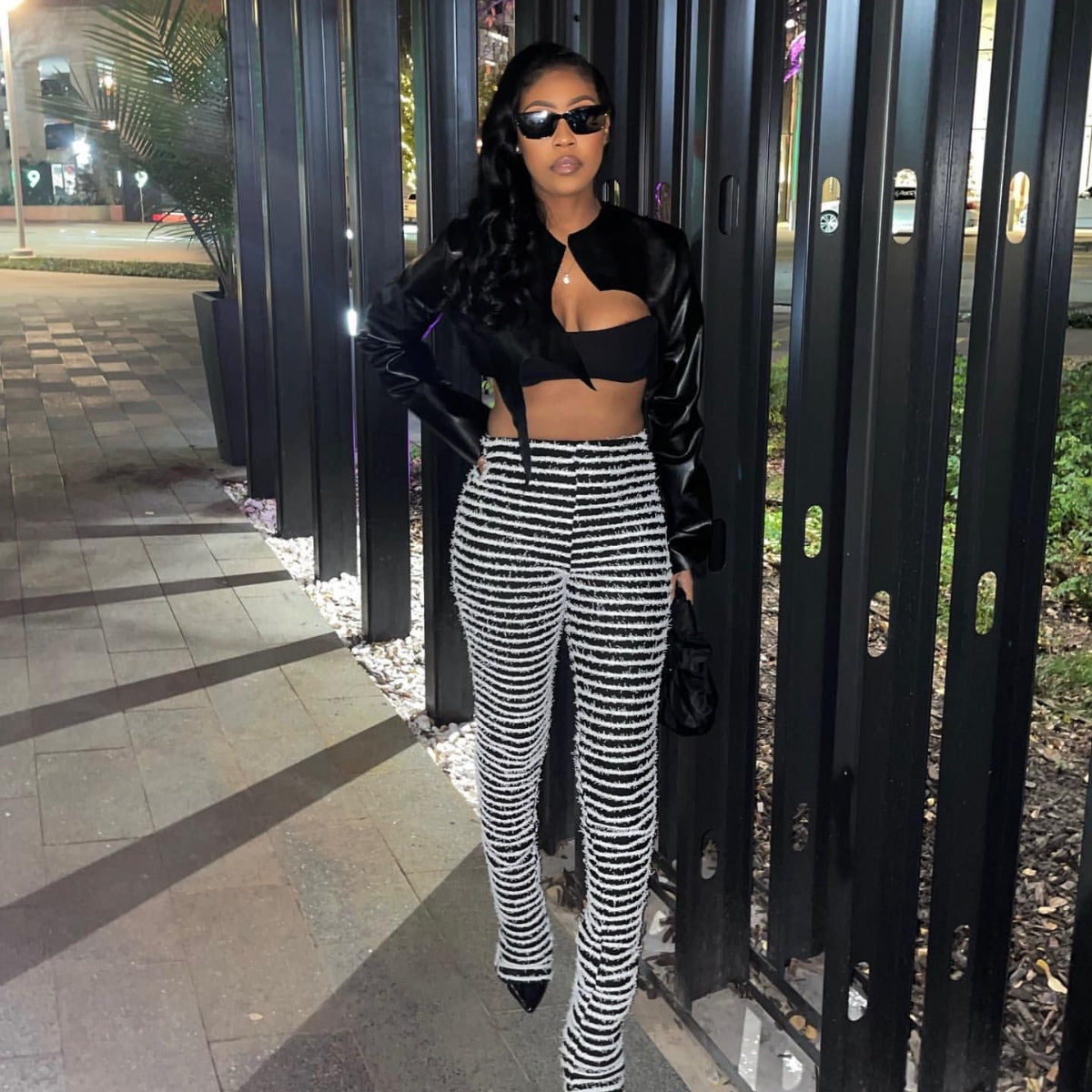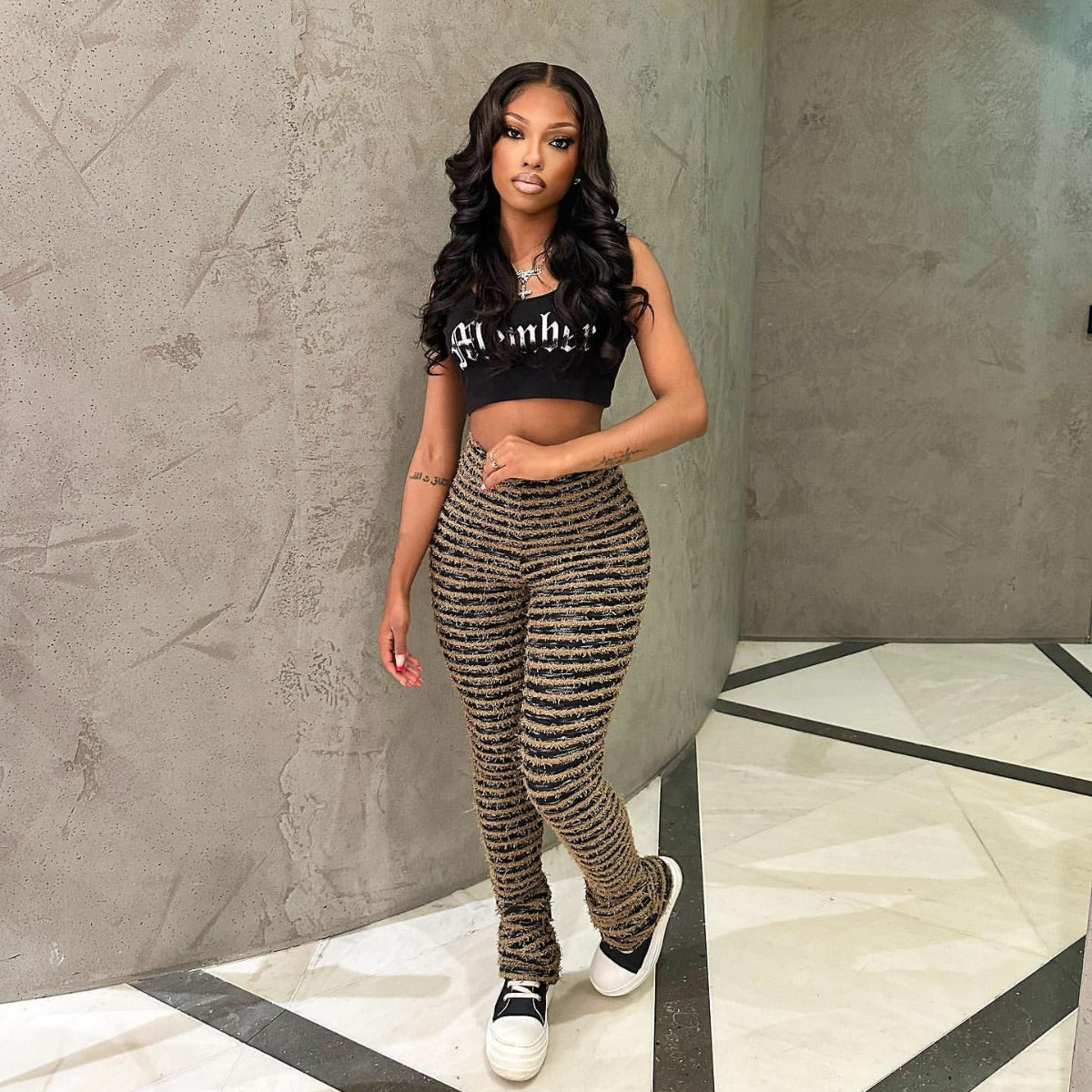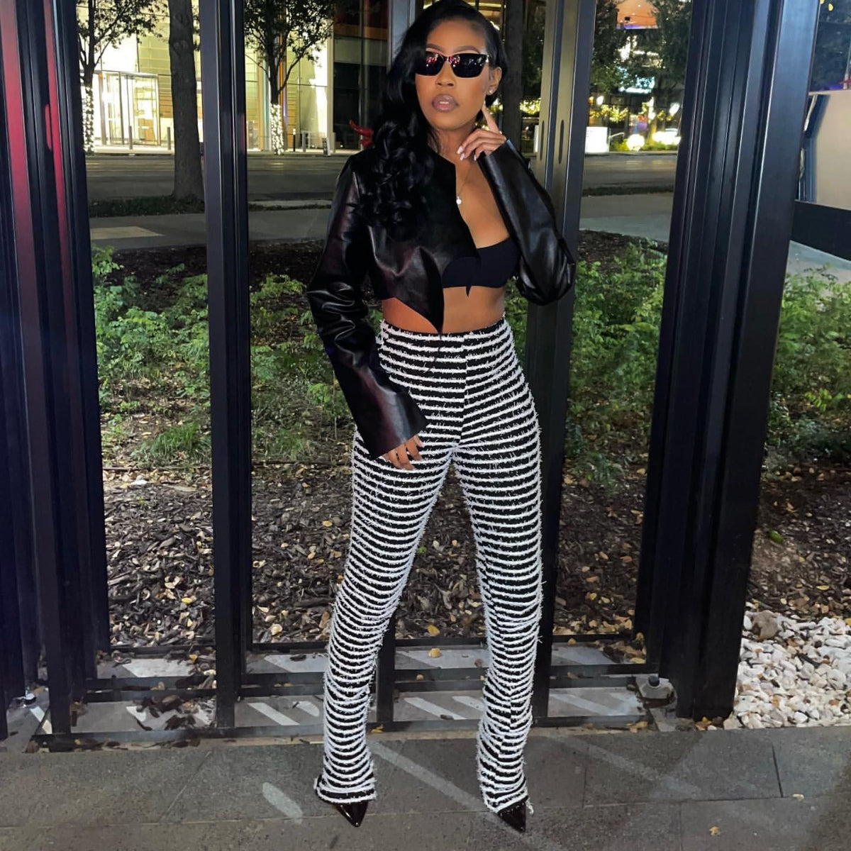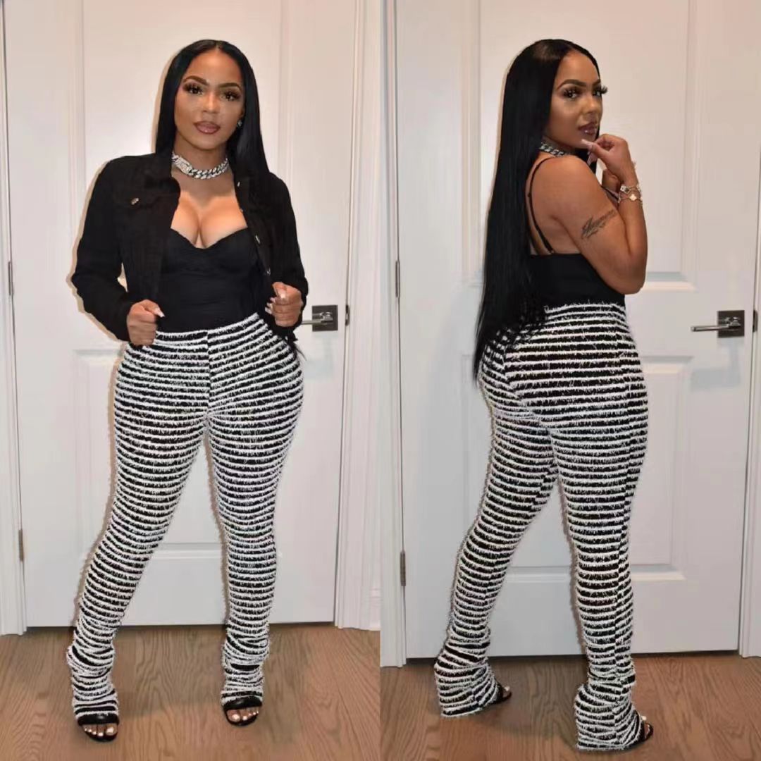 Texture Fluff Slim-Fit Striped Casual Pants(CL11290)