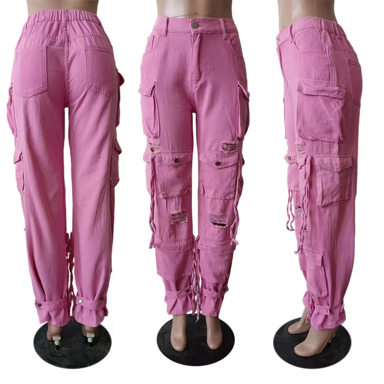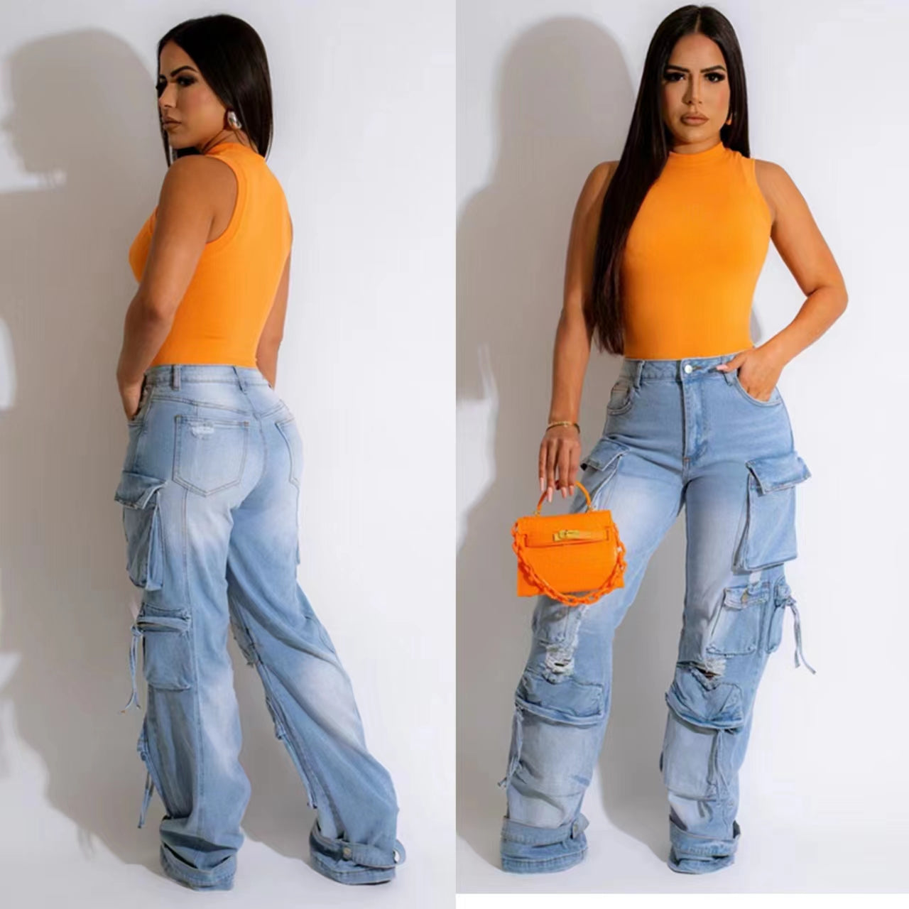 Three-Dimensional Multi-Pocket Retro Casual Jeans(CL11739)