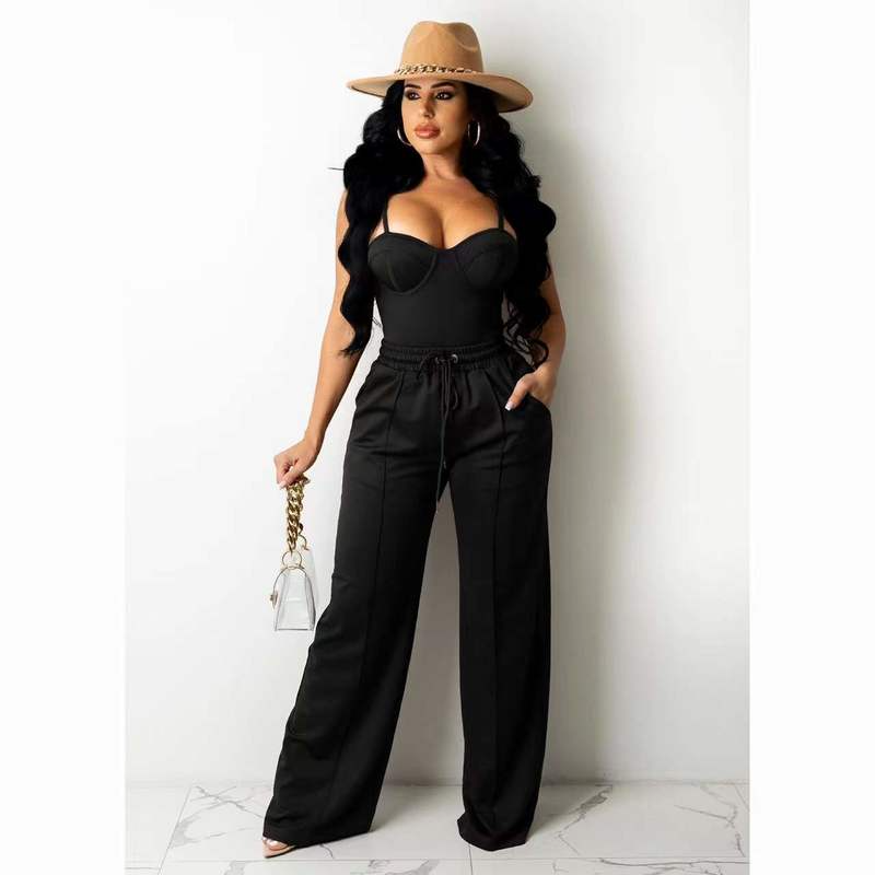 Wholesale suspender vest drawstring wide leg suit 2PC(CL9726)