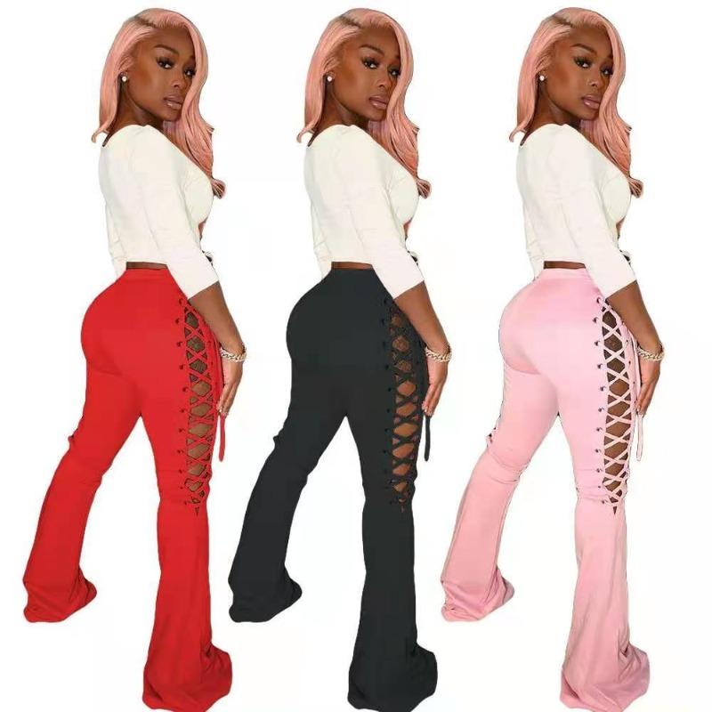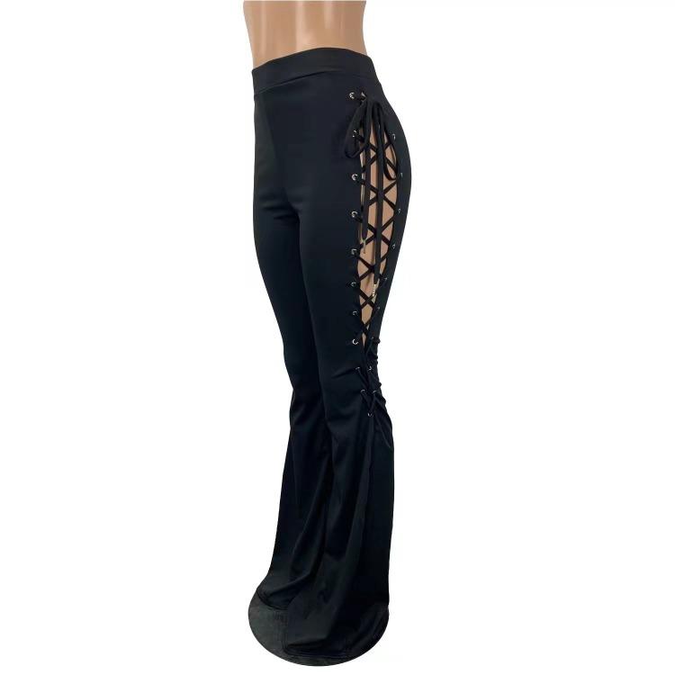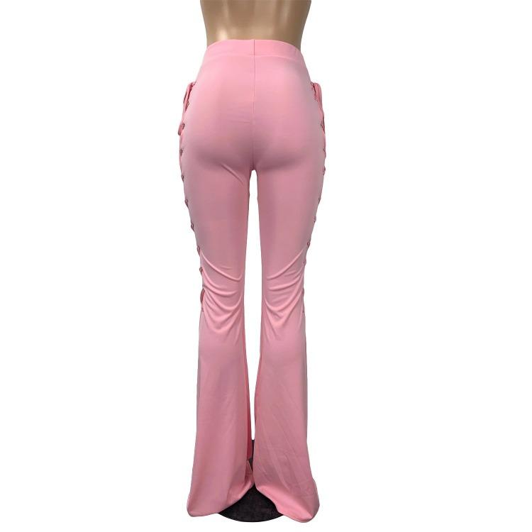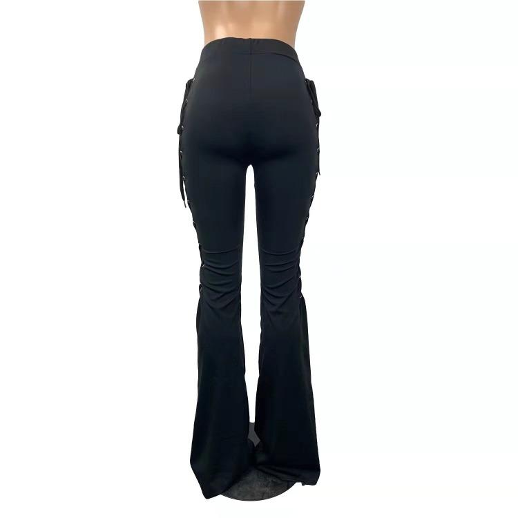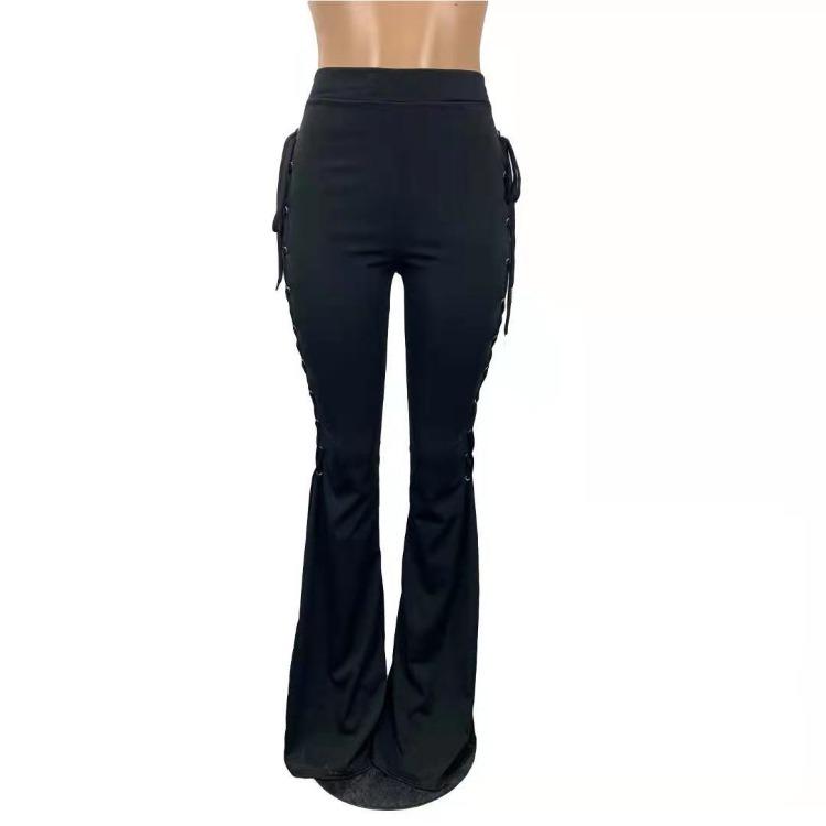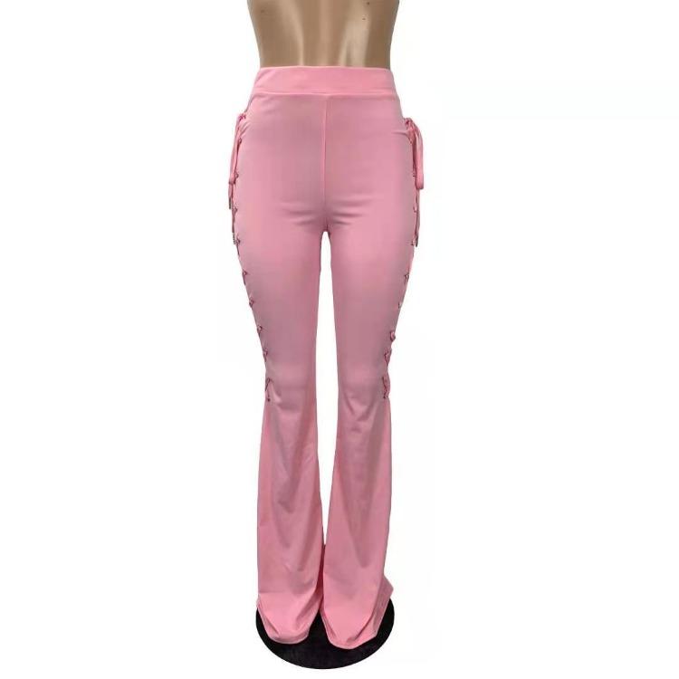 Wholesale women's solid color lace-up flared pants(CL8575)
