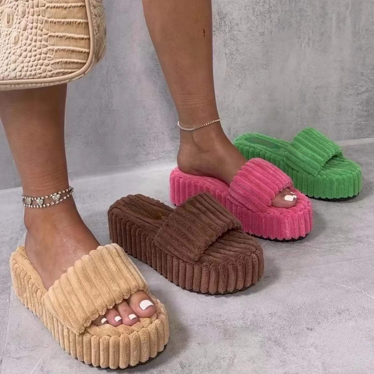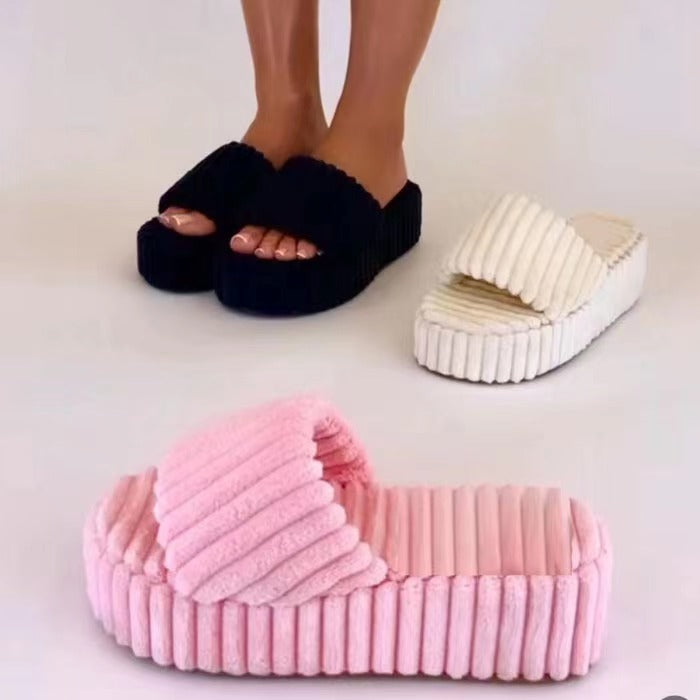 Fur Open Toe Slippers for Outer Wear(SL8419)