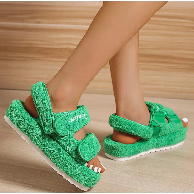 Round Head Thick Bottom Velcro Furry Sandals (SL8364)