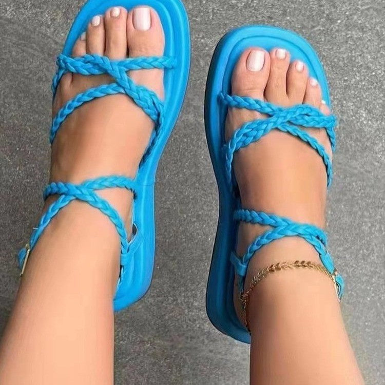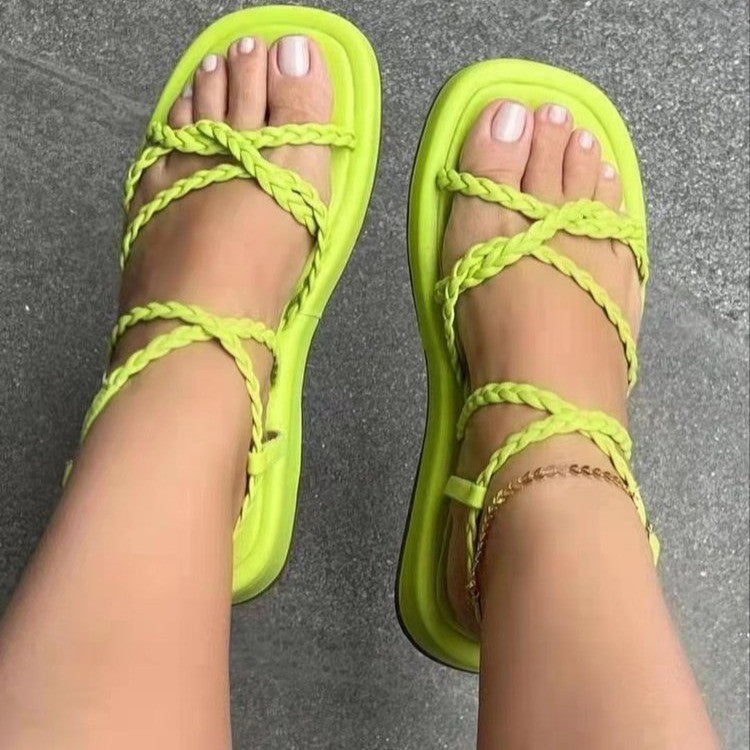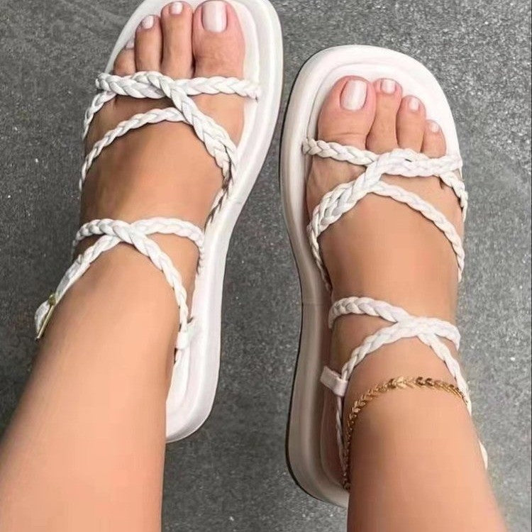 Round Toe Woven Platform Beach Sandals Beach(SL8422)