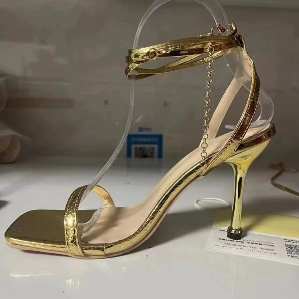 Square Toe Anklet Strap Stiletto Heel Sandals(HH8082)
