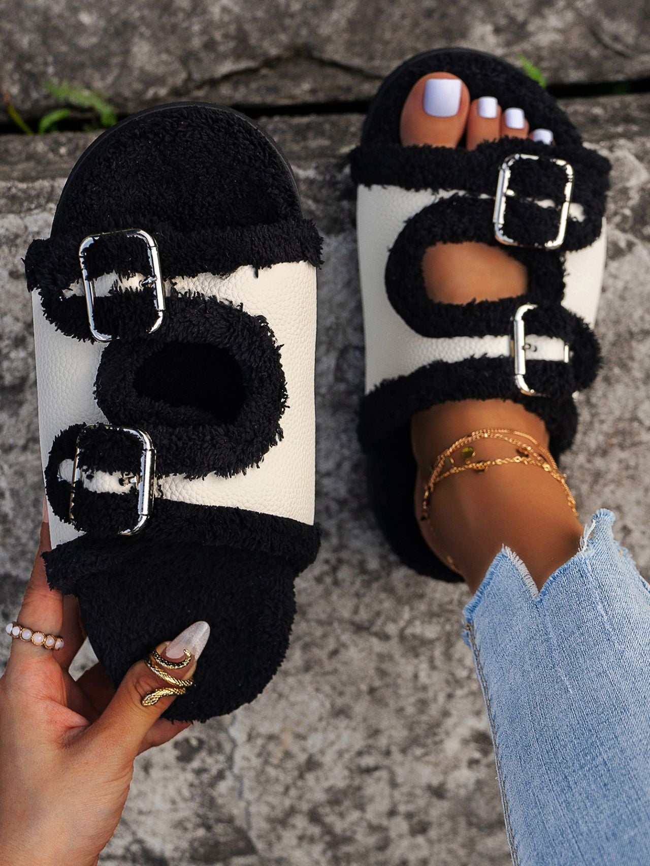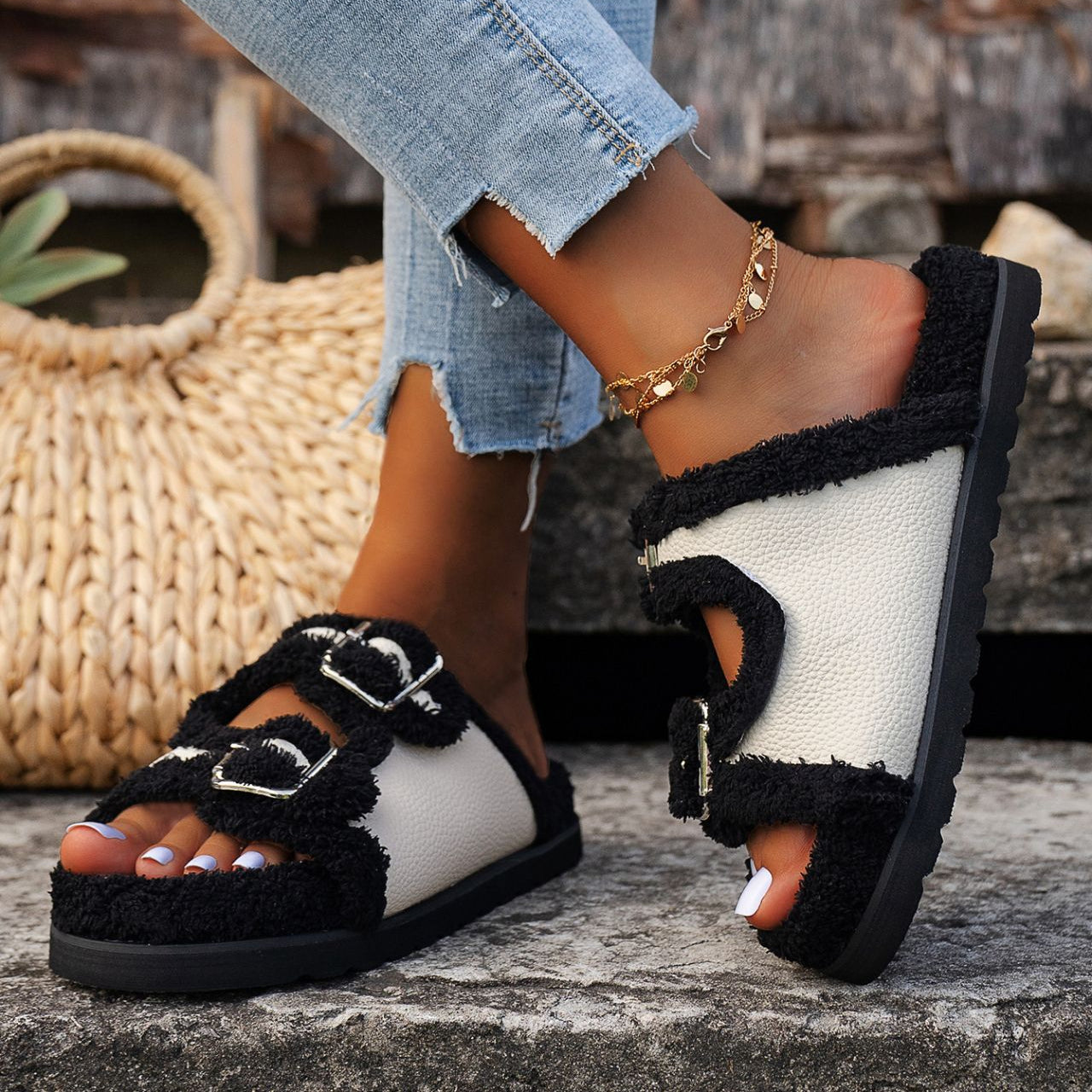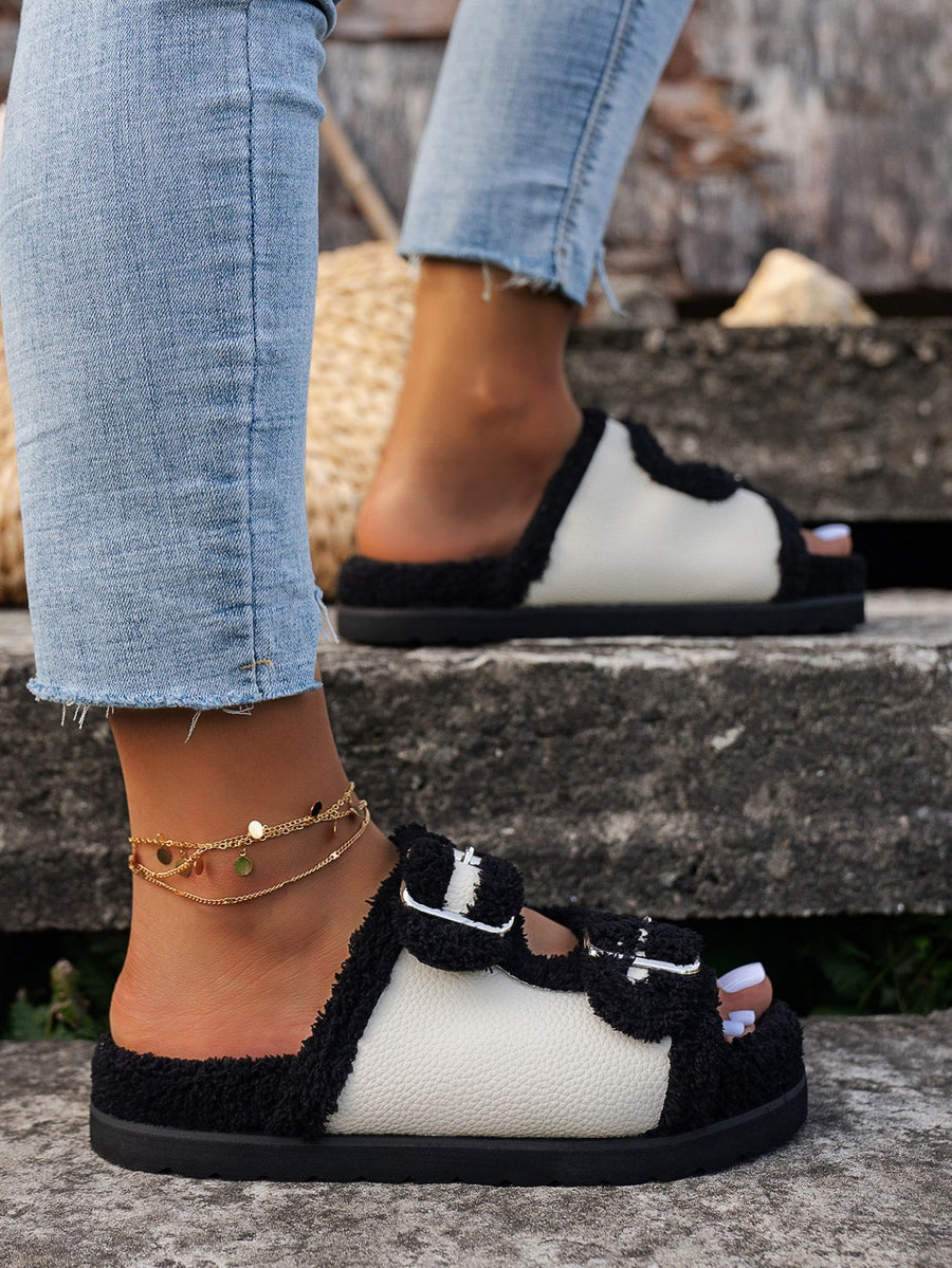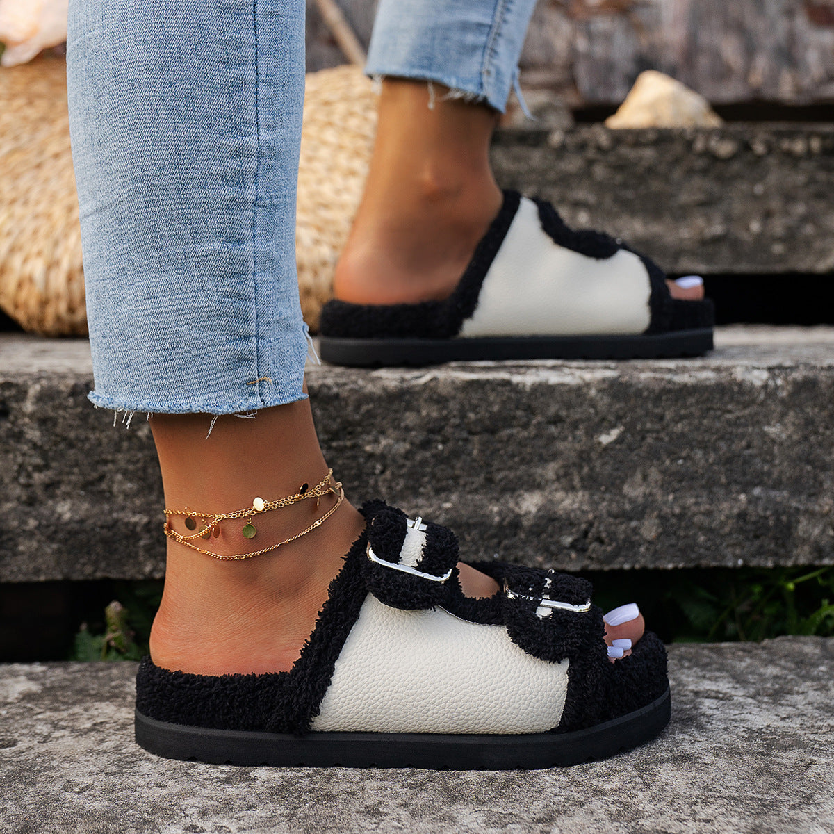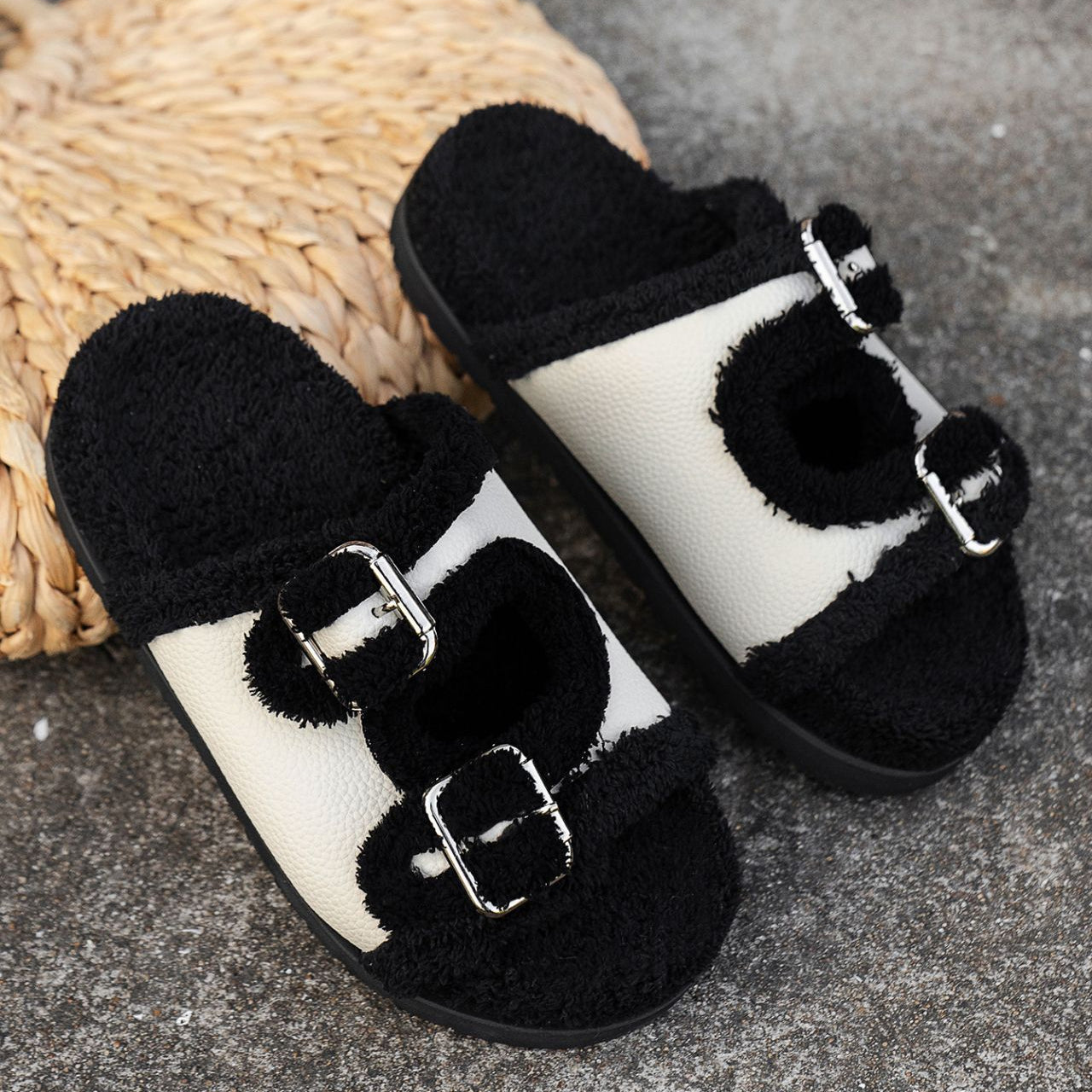 Thick sole button and plush outer wearing plush slippers(SL8446)