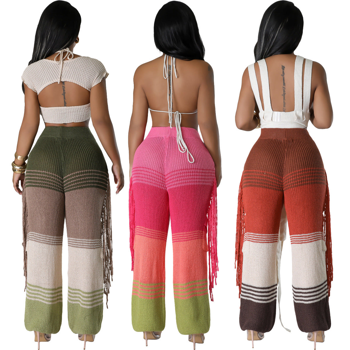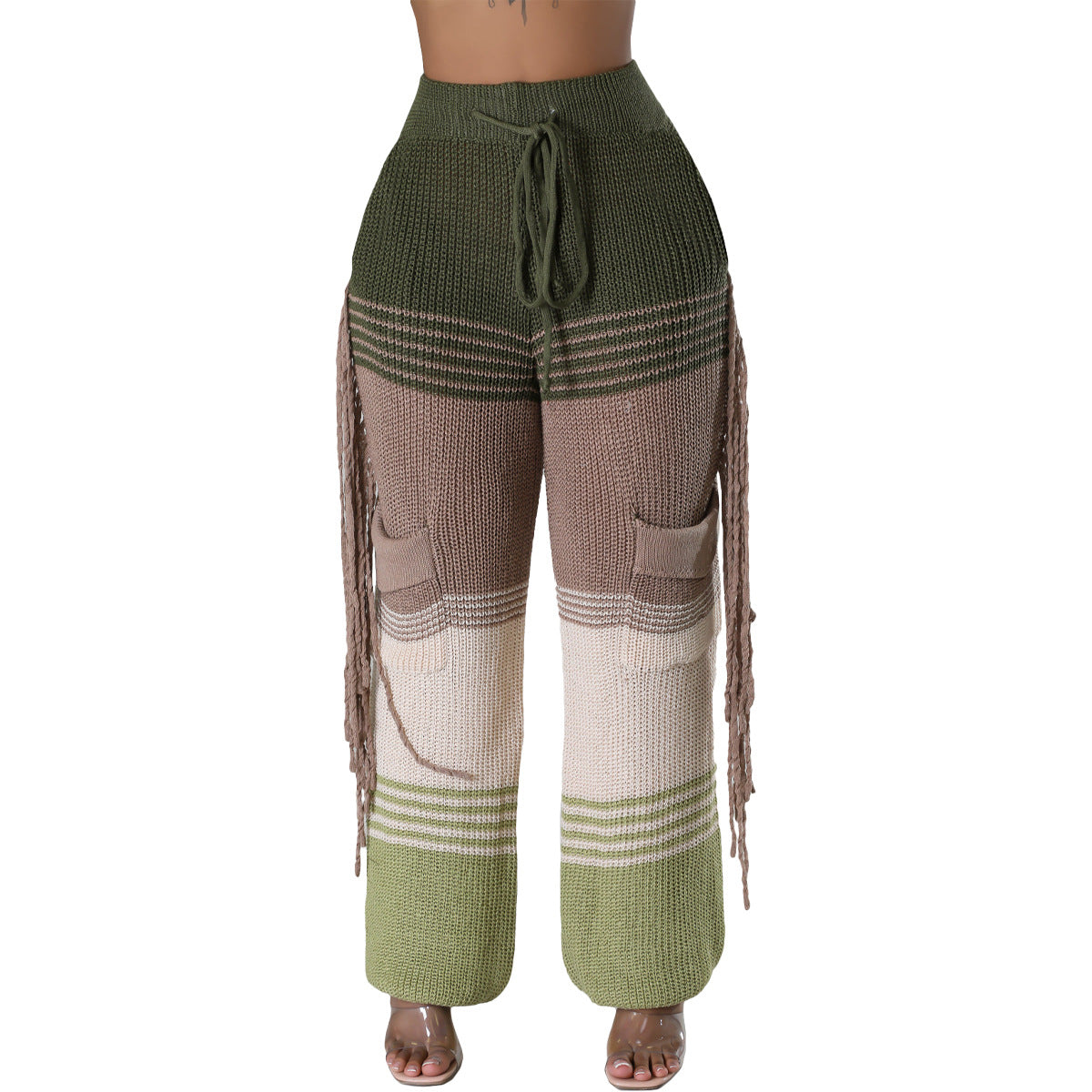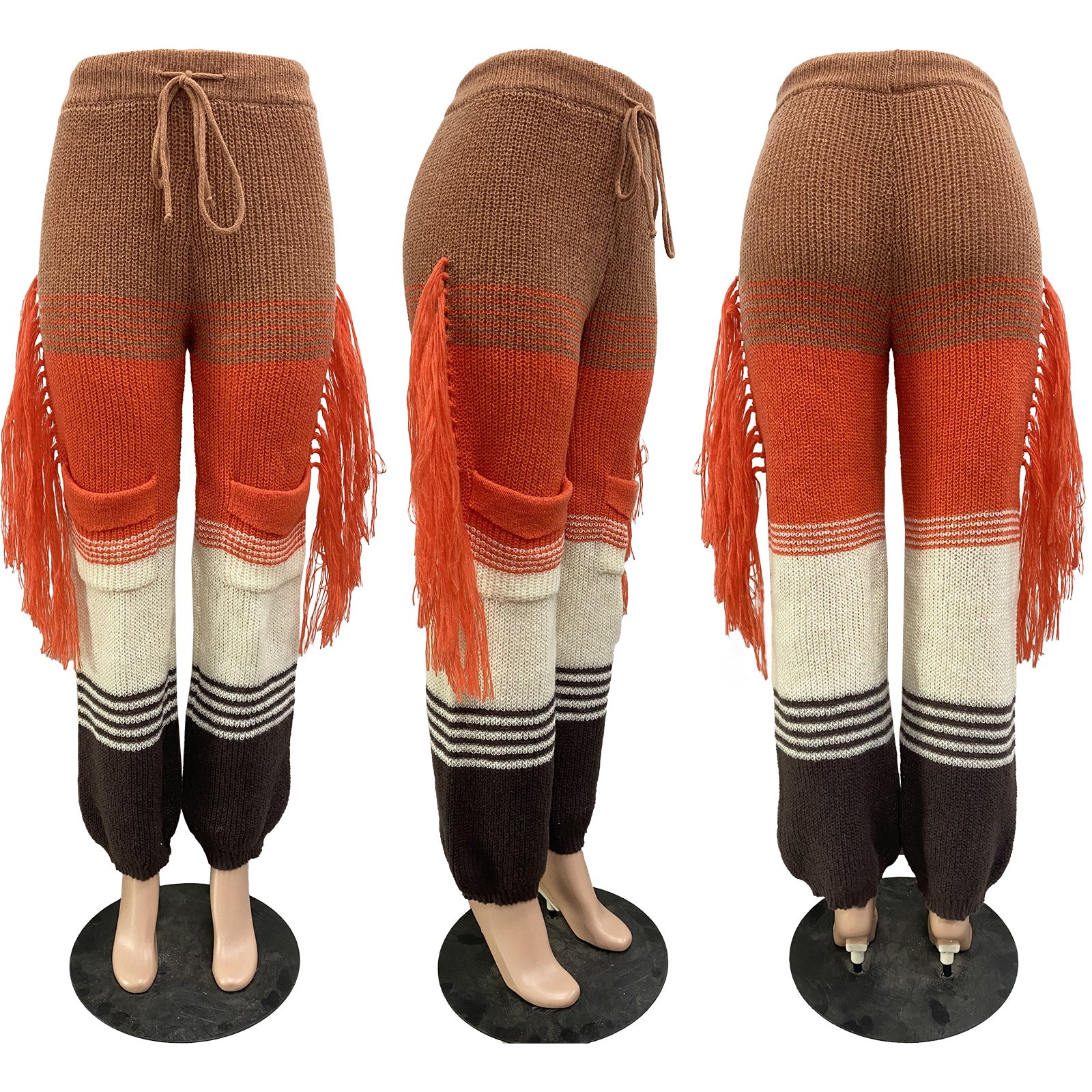 Casual knit colour-block hand-hooked tassels for loose straight-leg pants(CL12011)