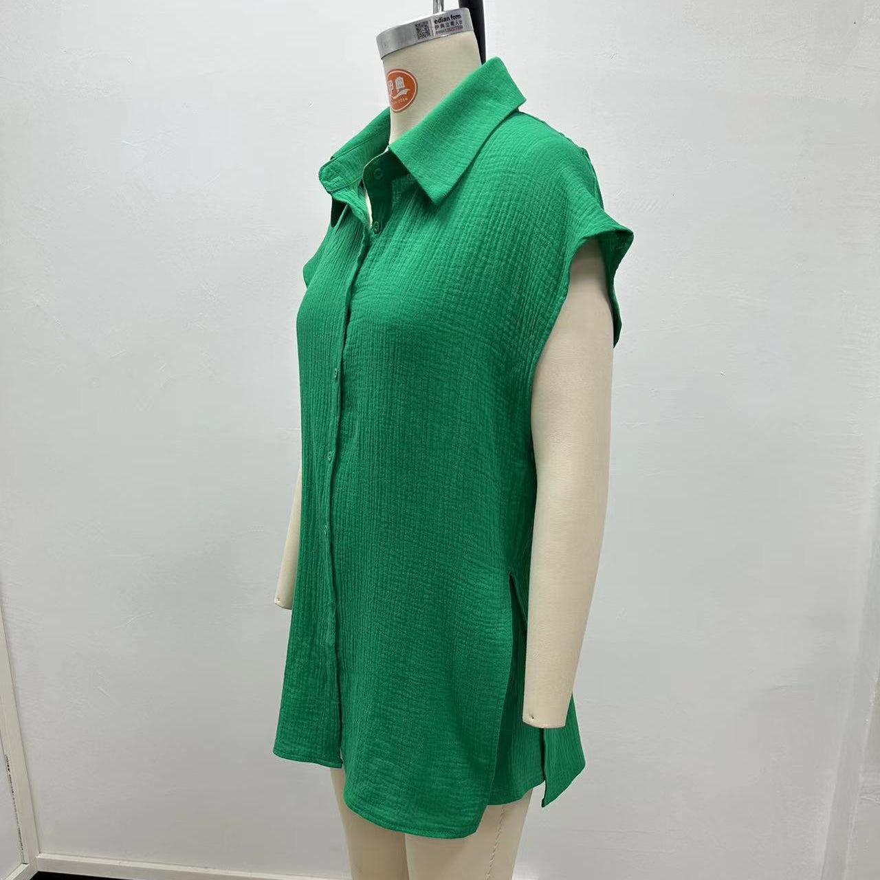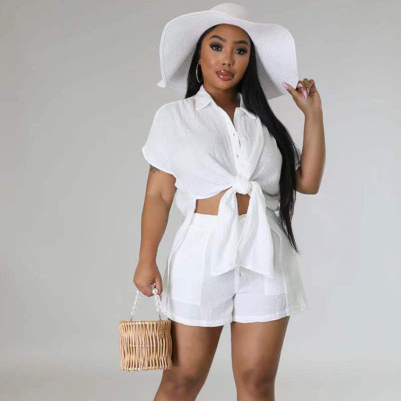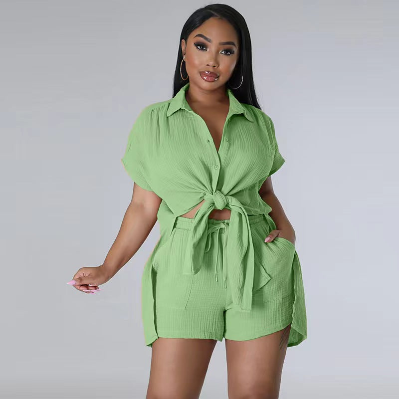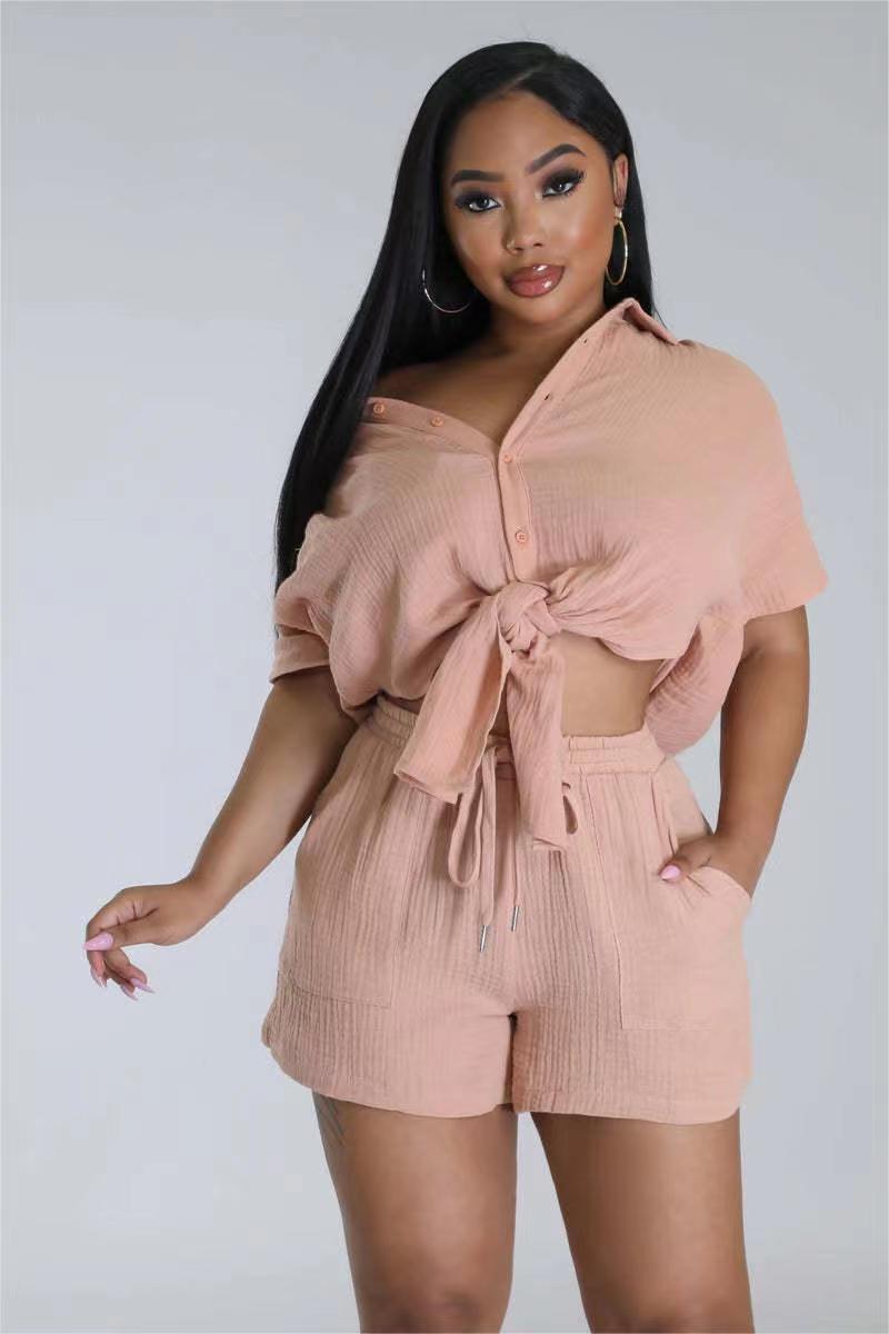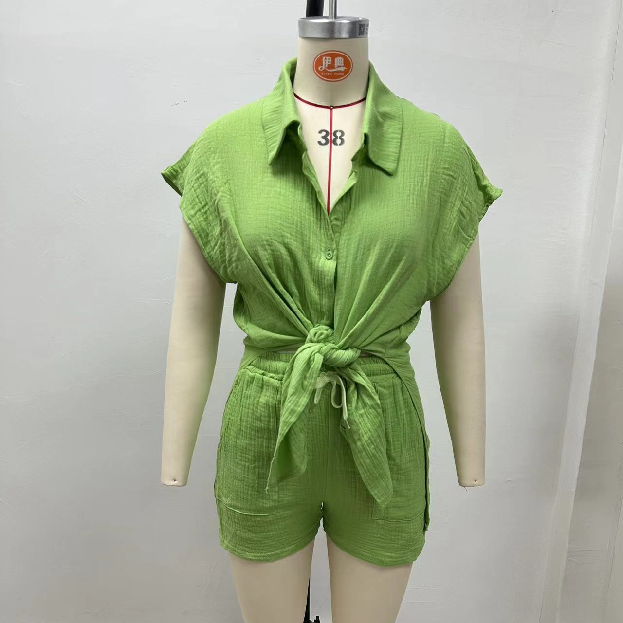 Cotton and Linen Solid Color Shirt Short-Sleeved Casual Shorts Suit(CL11638)