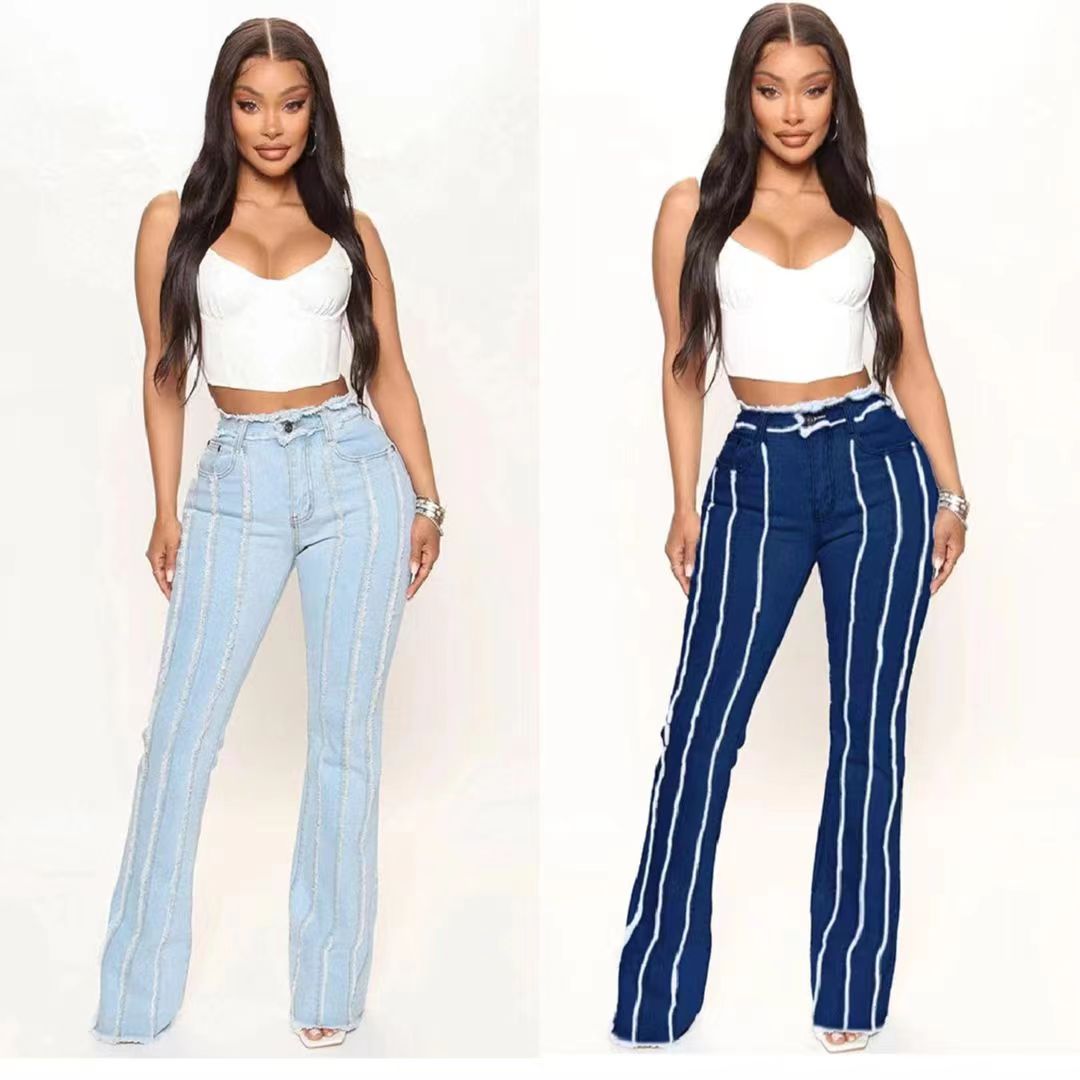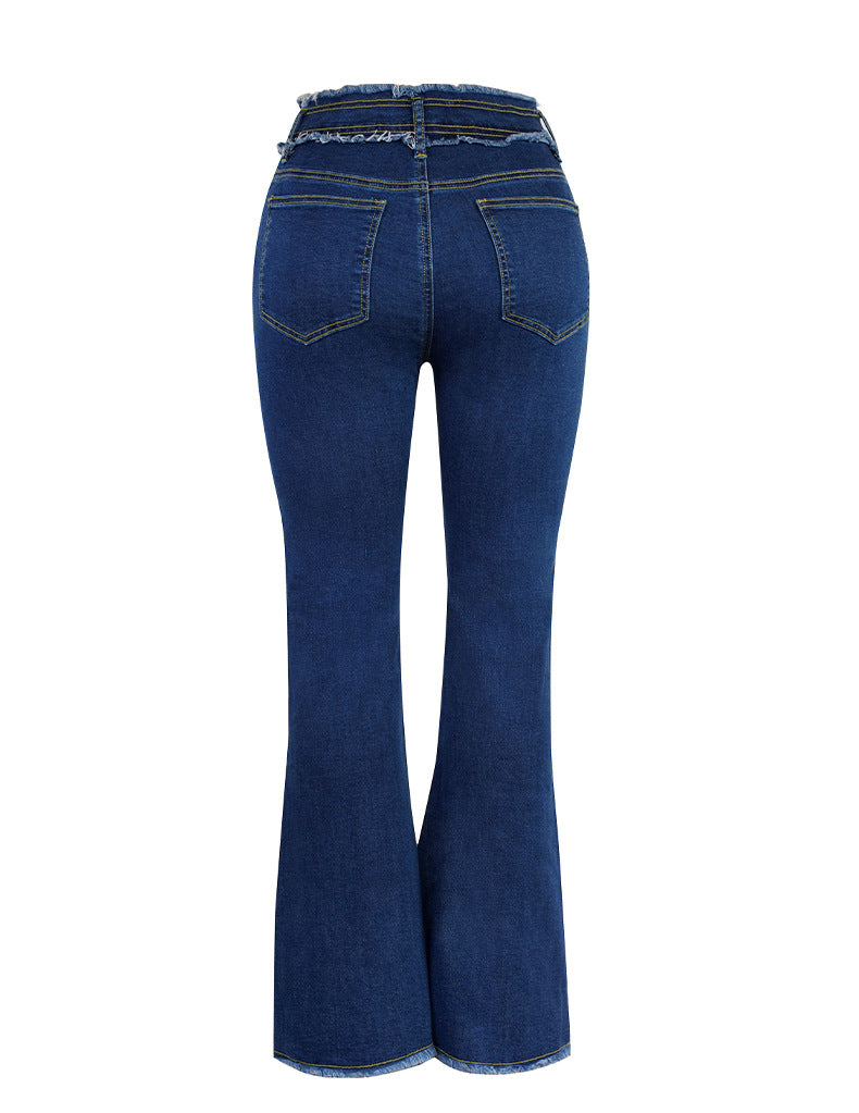 High Elastic Mid Waist Burrs Women's Denim Trousers(CL11190)