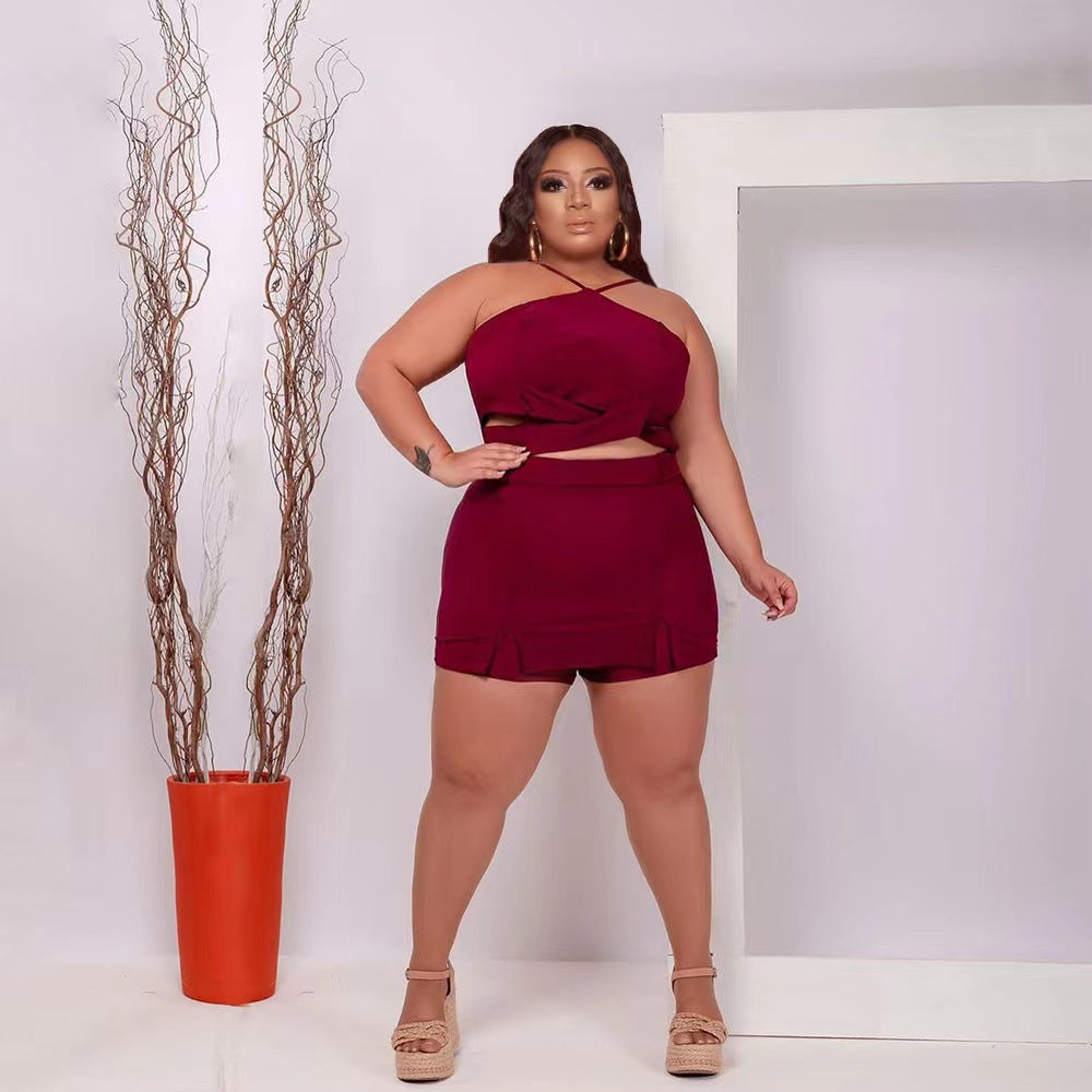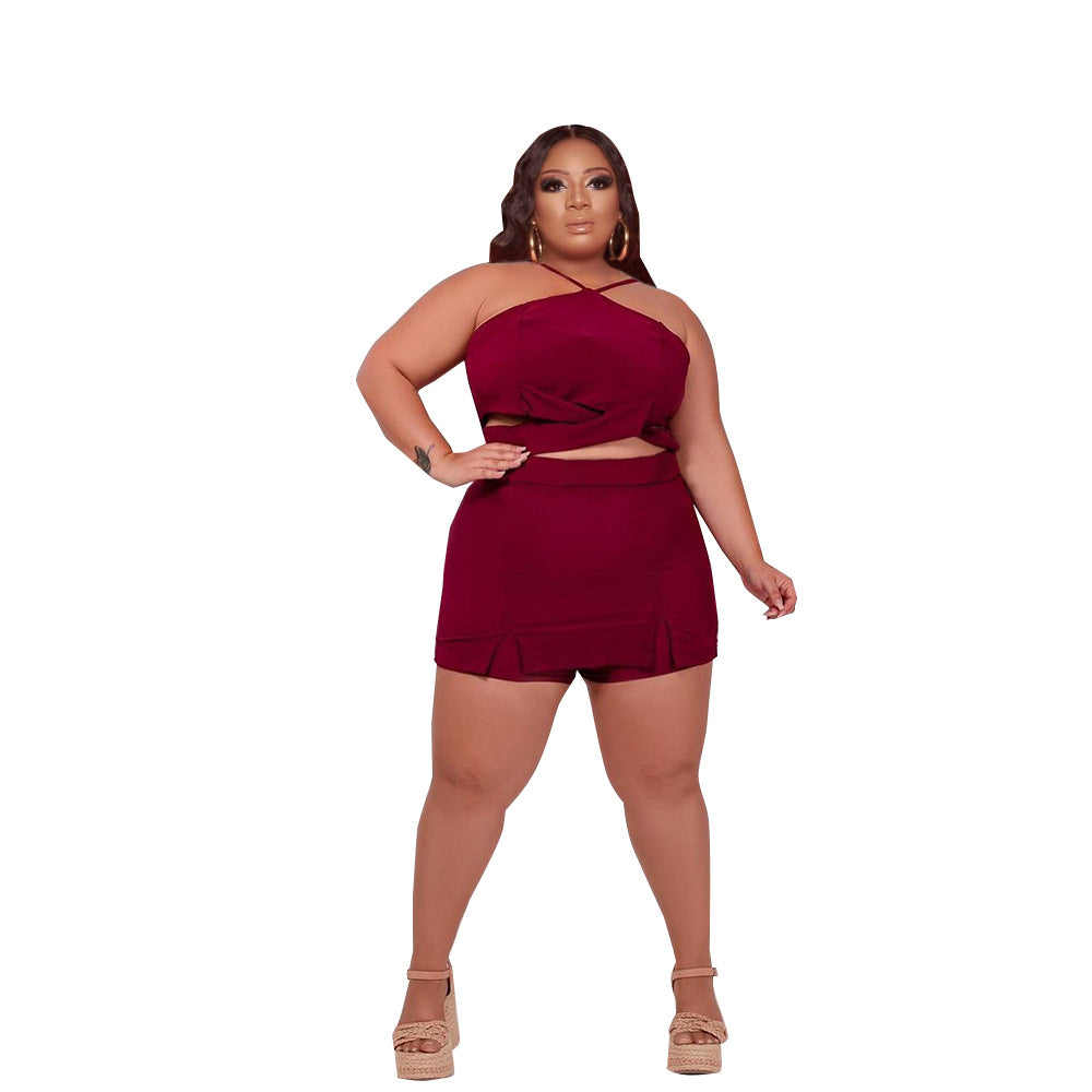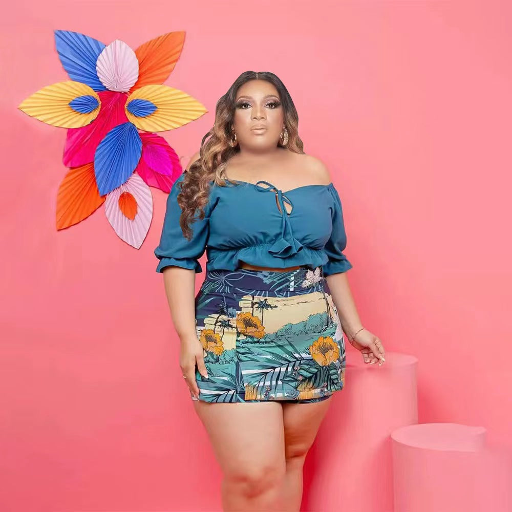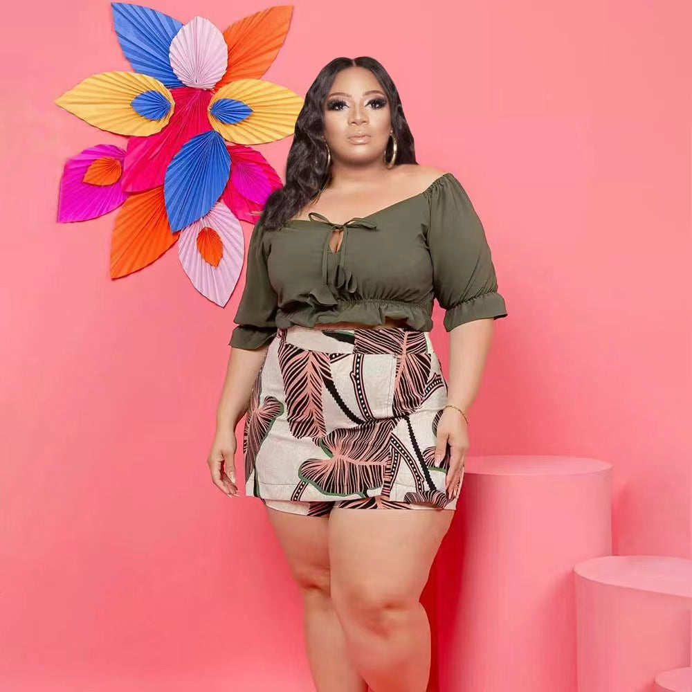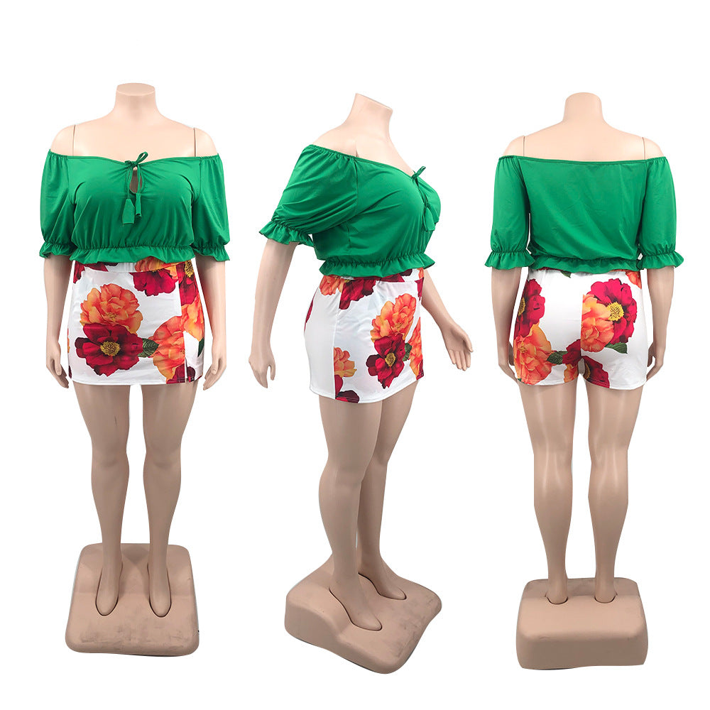 Off-Shoulder Wooden Ear Printed Solid Color Culottes Suit(CL11592)