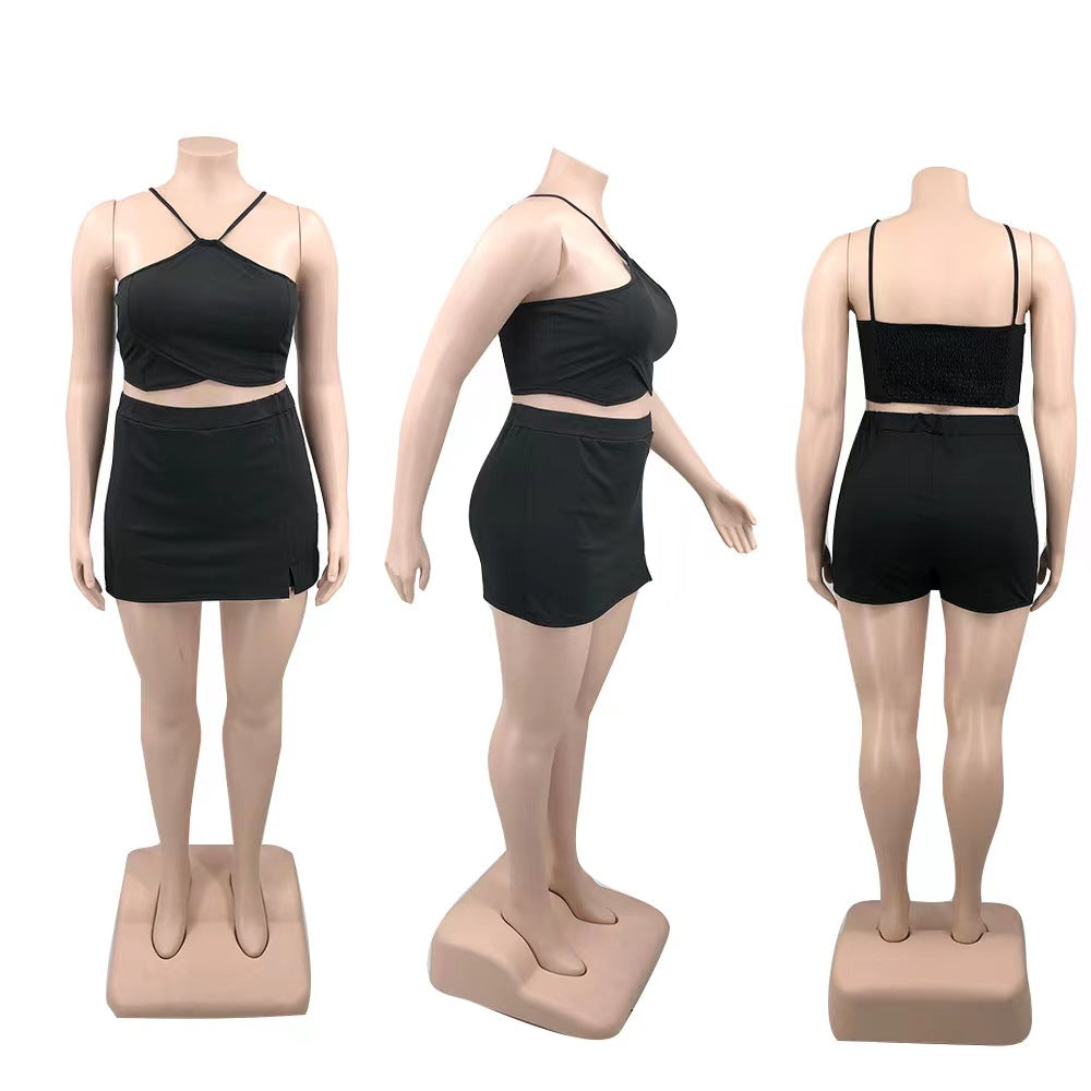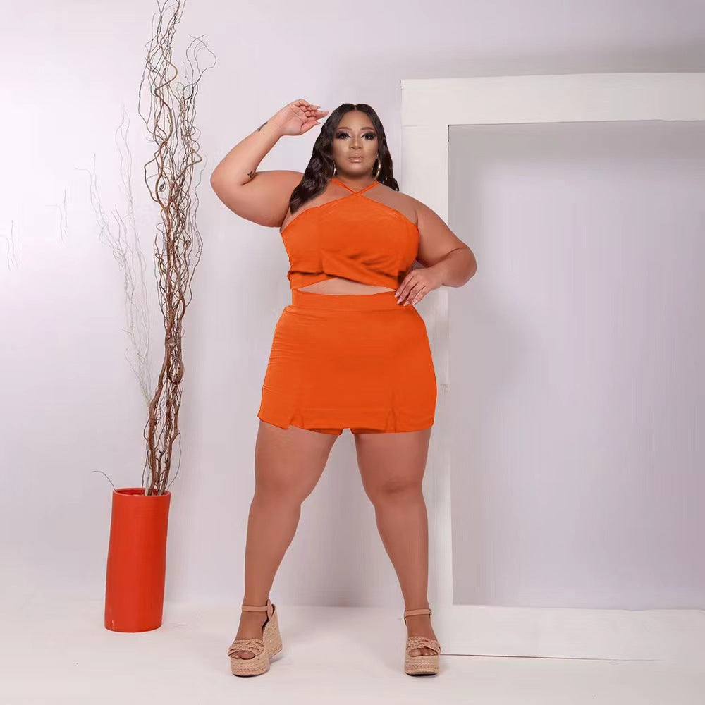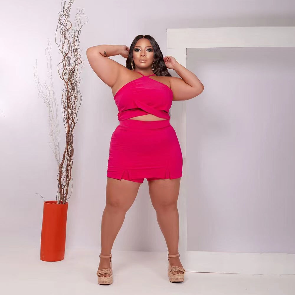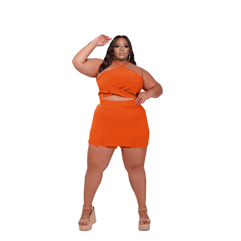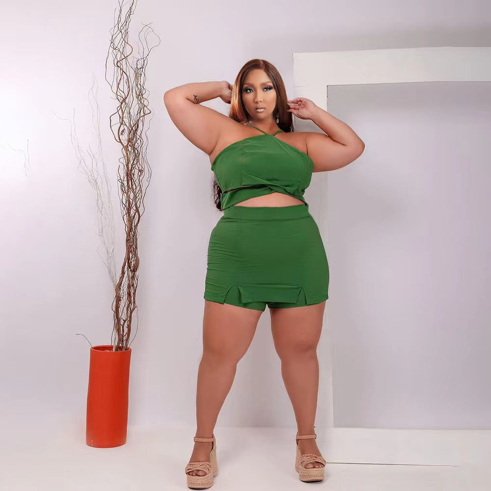 Off-Shoulder Wooden Ear Printed Solid Color Culottes Suit(CL11592)