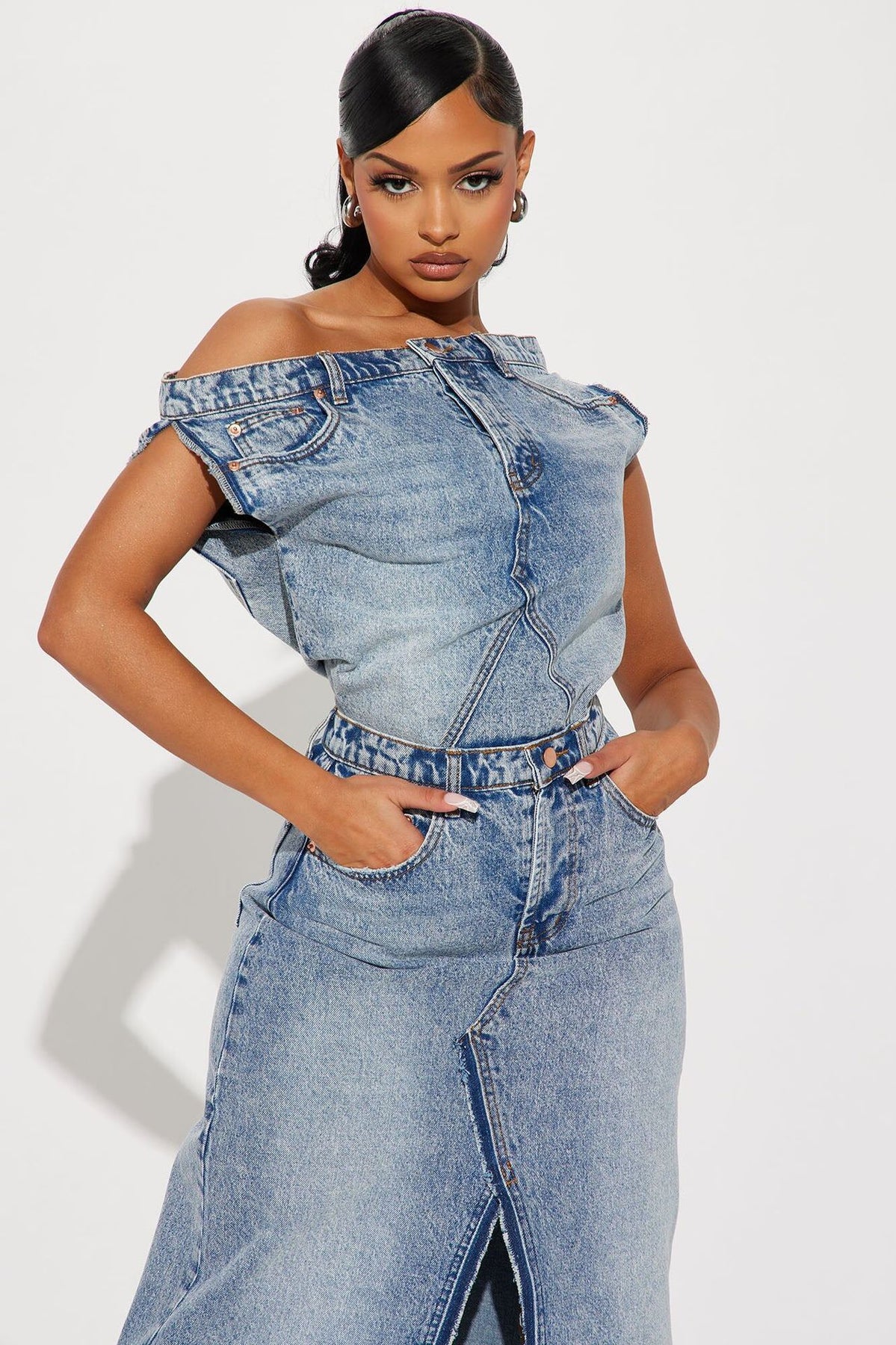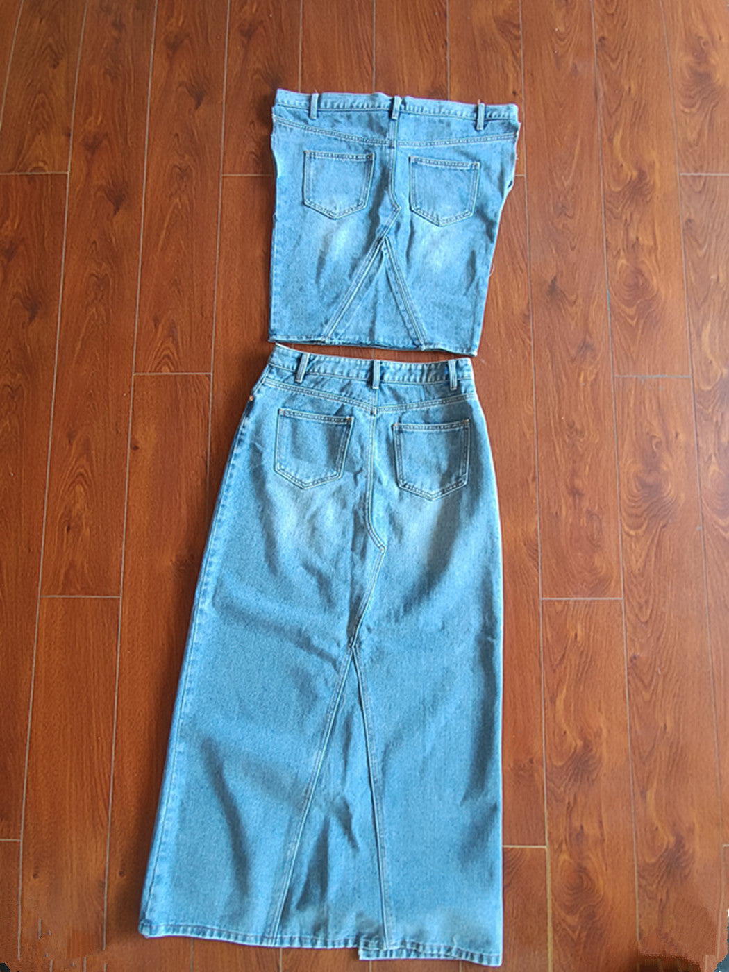 Off-the-Shoulder Vintage Denim Skirt Suit Two-Piece Set(CL11896)