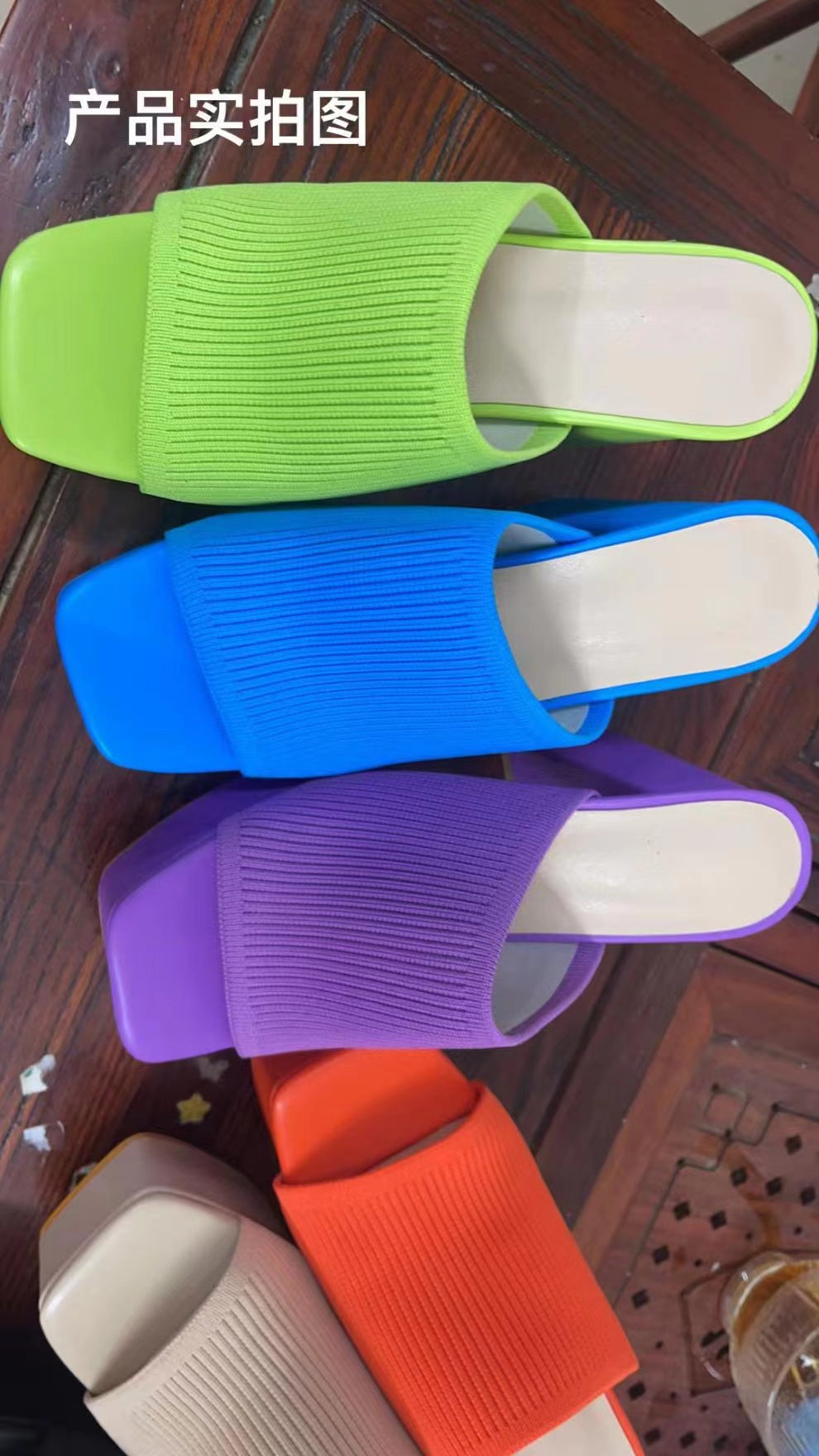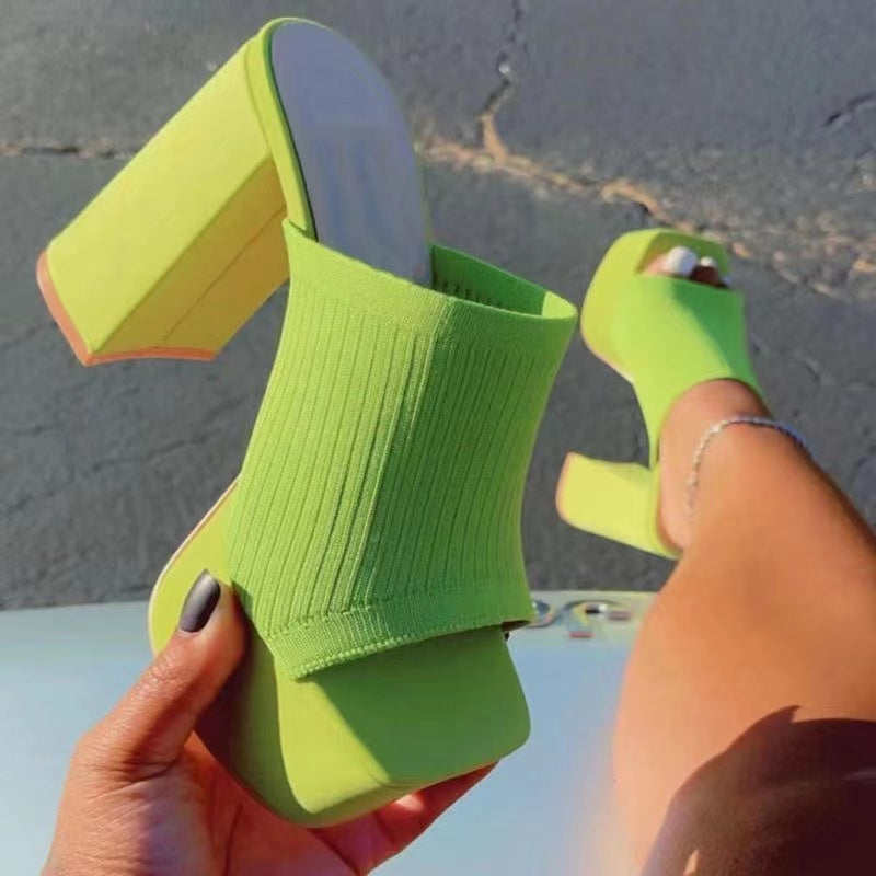 Square-headed thick high-heeled knitted elastic sandals(SL8451)